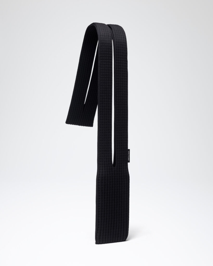 Né d’une collaboration entre ISSEY MIYAKE et Apple, l’iPhone Pocket ne relève ni du gadget technologique ni du simple objet de mode. Il s’inscrit dans une réflexion plus ancienne, chère à la maison japonaise : celle du vêtement comme structure ouverte, adaptable, capable d’accueillir le corps — ou ici, l’objet — sans jamais le contraindre. Le concept fondateur, a piece of cloth, irrigue toute la pièce. Une seule surface textile, travaillée en maille 3D, capable de s’étirer, de se resserrer, de vivre avec ce qu’elle contient.