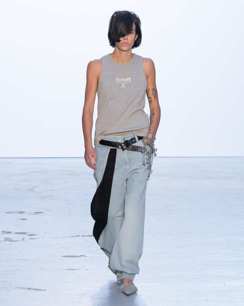 Le lieu n’est pas neutre. Une galerie du Palais de Tokyo, blanche, haute, presque clinique. Un espace qui oblige à regarder les corps avant les images. C’est là que BONBOM a choisi de présenter Sur la M, le C, les G, sa collection Été 2026. Premier défilé parisien. Un moment attendu, mais sans emphase. Chez BONBOM, le geste précède toujours l’annonce.