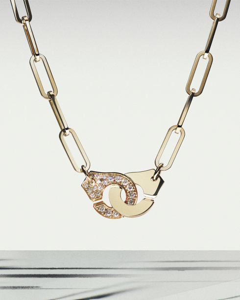 Les Menottes dinh van, collection emblématique née en 1976, complètent ce quatuor amoureux avec la force de l’évidence. Ce fermoir devenu emblème, inspiré à l’origine d’un simple porte-clés, incarne depuis près d’un demi-siècle le vocabulaire sentimental de la maison. « Aimer, c’est choisir », proclame la marque dans son dossier de presse rédigé par l’historienne du bijou Vanessa Cron. Les prix s’échelonnent du collier multi-motifs en or jaune à 990 euros jusqu’aux modèles grand format sertis de diamants atteignant 11 450 euros pour le collier et 5 150 euros pour le bracelet en platine.