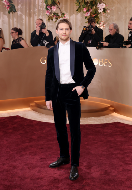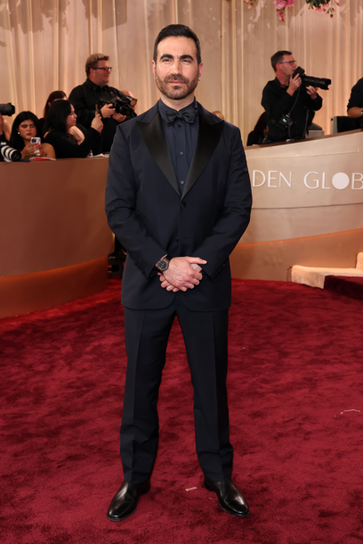 Cette orientation vers le noir traversait l’ensemble du tapis rouge. Colman Domingo, en Valentino intégralement noir du col aux chaussures, portait des appliqués argentés parsemés depuis l’épaule gauche, le long du revers, jusqu’à la taille — accompagné de bijoux Boucheron. Jeremy Allen White optait pour Maison Louis Vuitton, tandis que Leonardo DiCaprio revenait à Maison Dior. Chaque choix traduisait une compréhension : dans un contexte d’inflation visuelle, le noir devient paradoxalement le geste le plus audacieux.