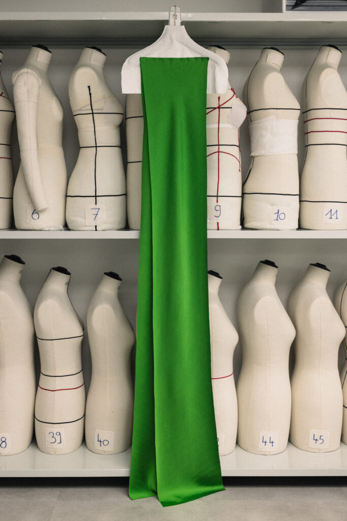 Vivienne Westwood illustrait une tout autre stratégie : pluralité des profils. Dakota Fanning portait une robe champagne, tandis qu’Ariana Grande délaissait le rose Glinda pour une pièce sombre évasée à la taille. Cette capacité à habiller des silhouettes dissemblables témoigne d’un savoir-faire adaptatif plutôt que d’une signature univoque.