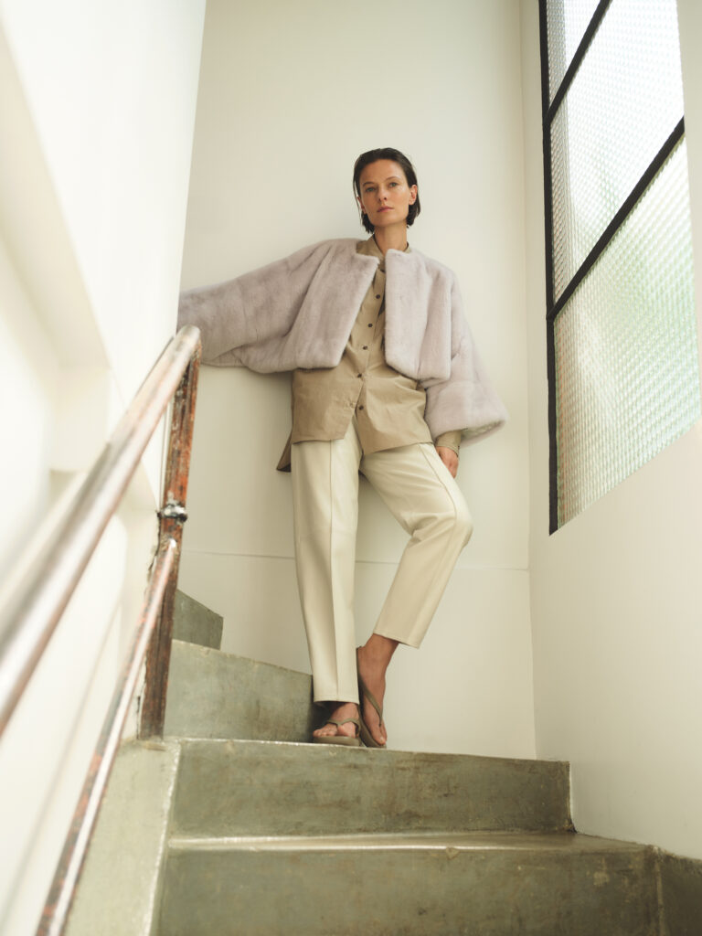 Il est rare qu’une maison historiquement liée à la rigueur de la fourrure et de la peau parvienne à capturer l’immatérialité d’une courbe. C’est pourtant l’exercice auquel s’est livrée la Maison Yves Salomon pour sa collection Printemps-Été 2026, en convoquant l’esprit d’Elsa Peretti. Loin de la simple citation esthétique, cette référence marque une volonté d’épure : traduire la fluidité organique et la simplicité assumée de la célèbre créatrice de bijoux dans un vestiaire textile et cuir.