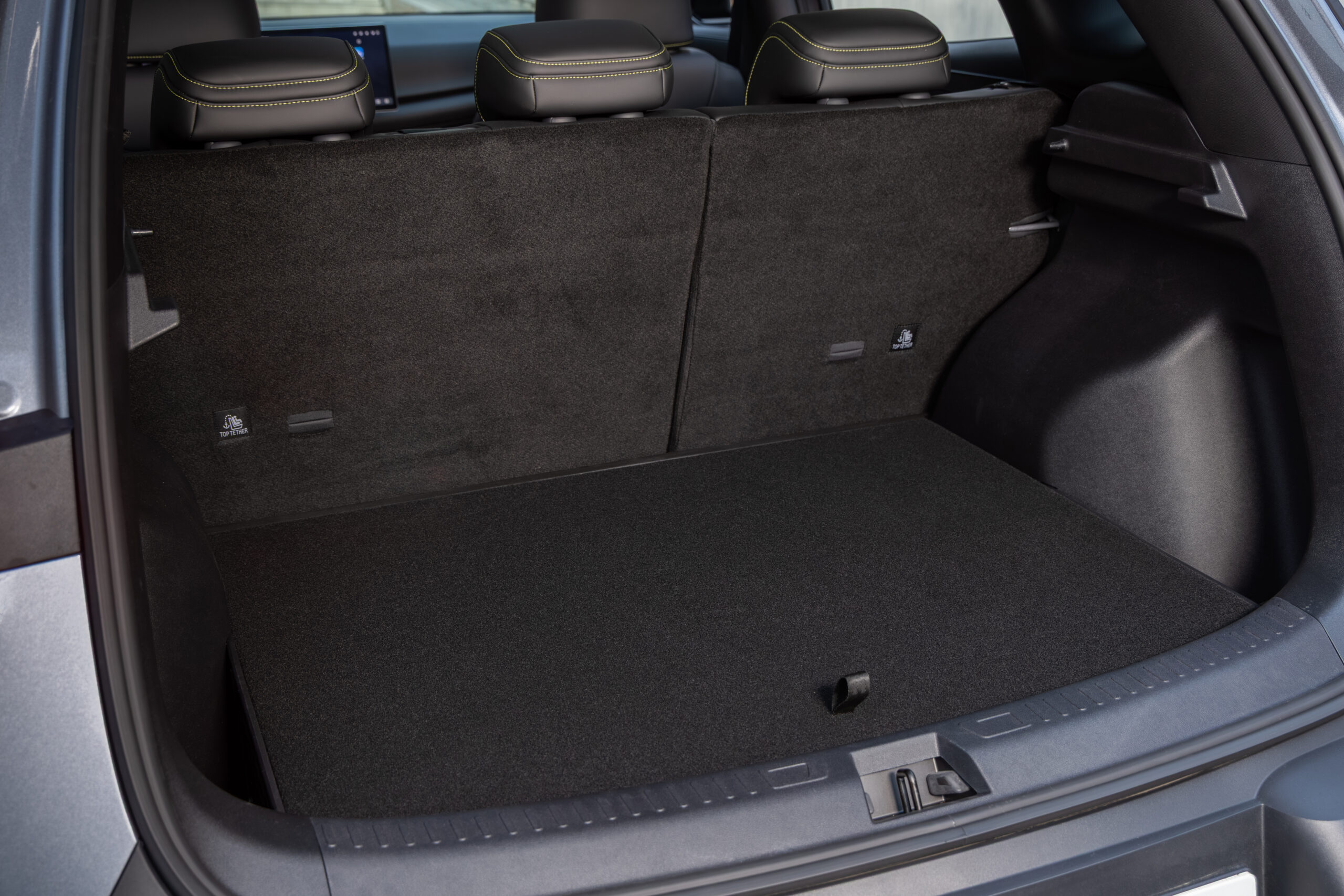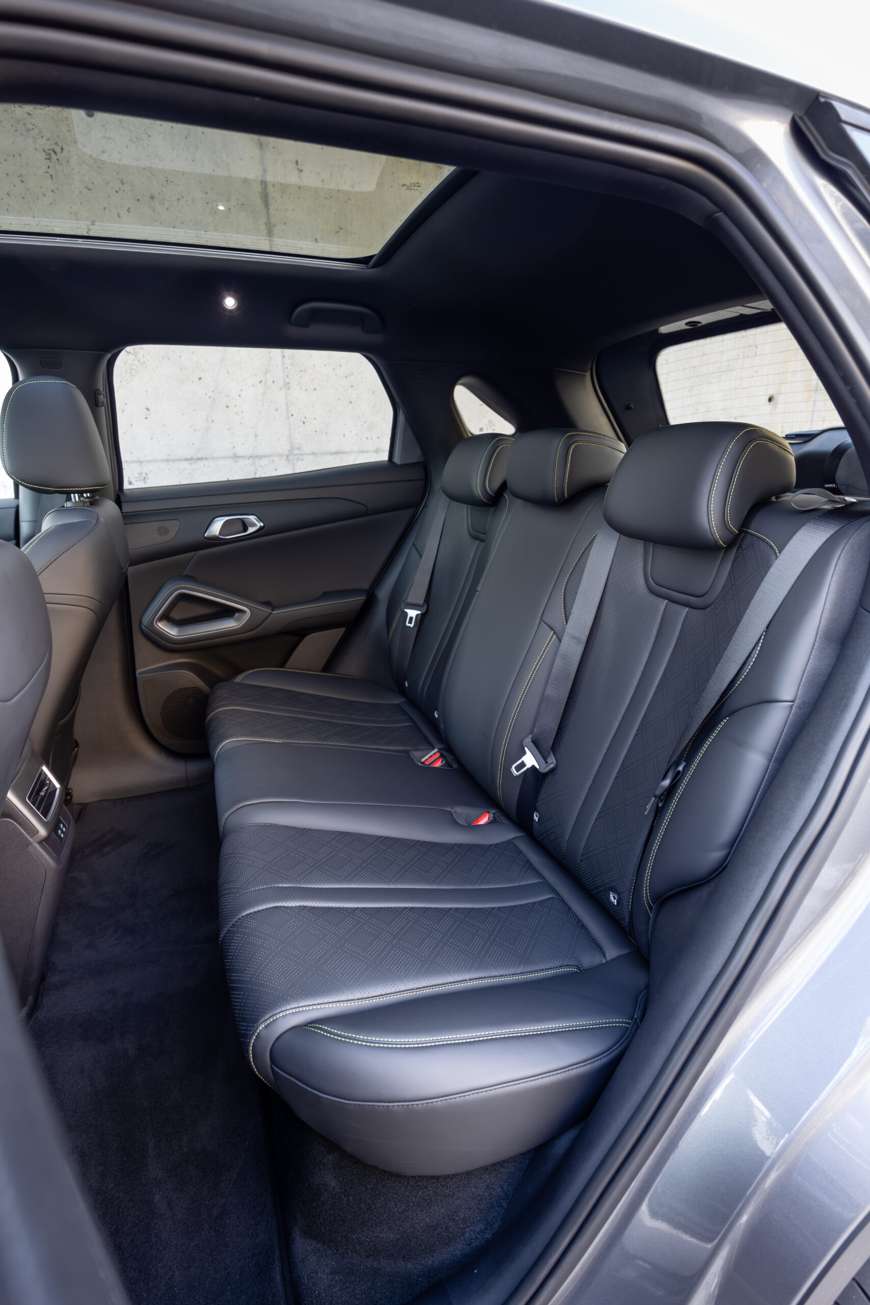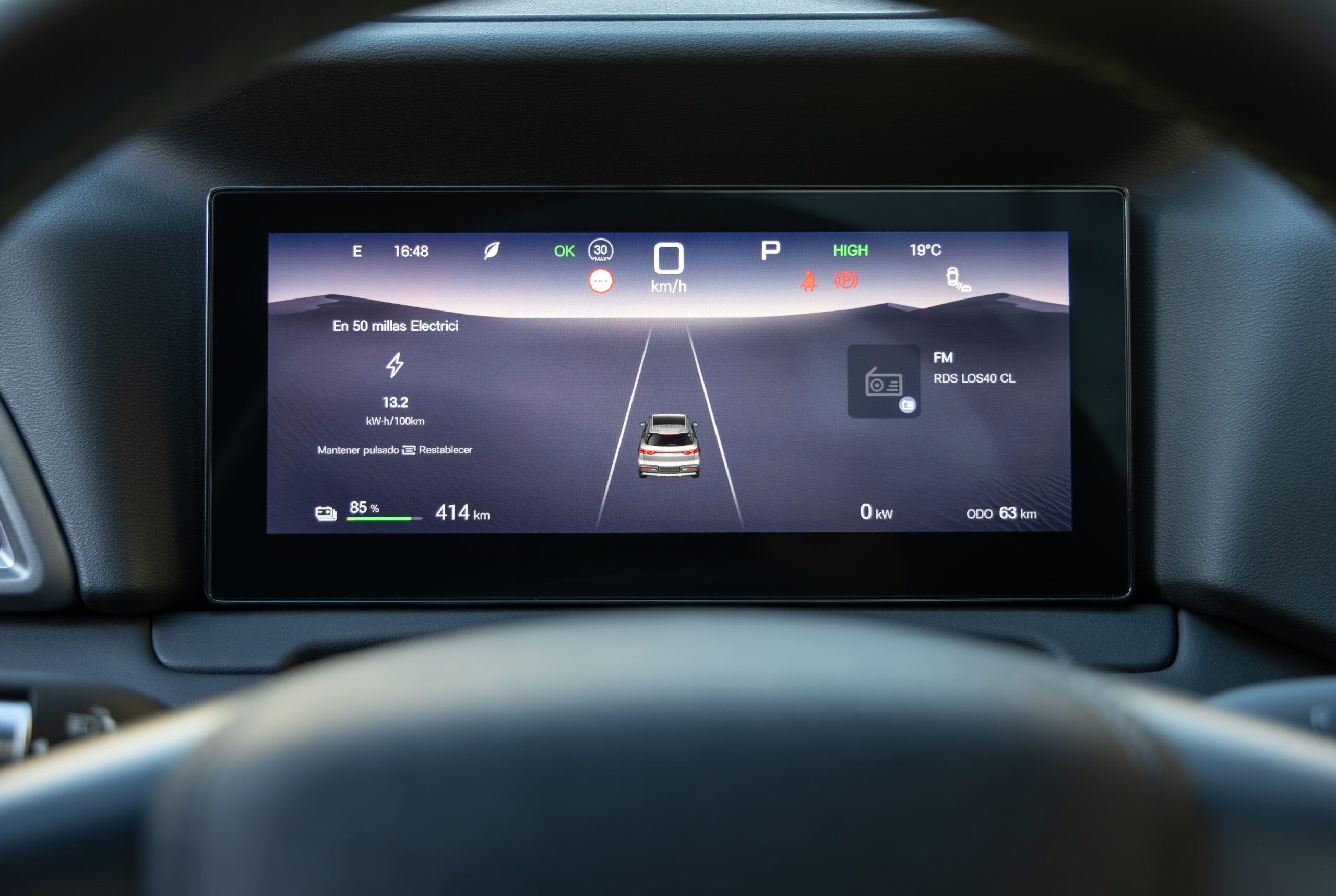 L’habitacle s’enrichit également d’équipements premium. Les vitres arrière surteintées apportent une touche de confidentialité et de protection solaire appréciable, tandis que les ports USB bénéficient de débits de transfert accélérés. Le coffre gagne 50 litres pour atteindre 450 litres — un volume désormais supérieur au Peugeot e-2008 (434 litres) et idéal pour les familles. L’écran tactile rotatif de 12,8 pouces, la sellerie TEP (cuir vegan), les sièges avant électriques et chauffants, le toit panoramique et le régulateur de vitesse adaptatif complètent une dotation déjà généreuse.