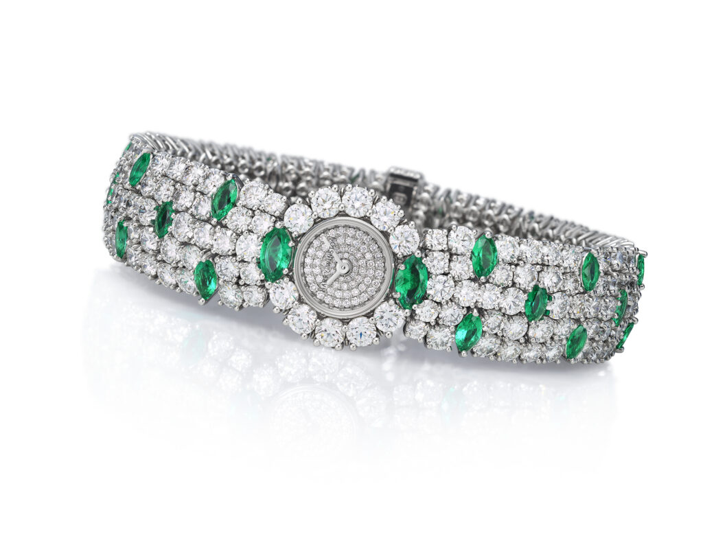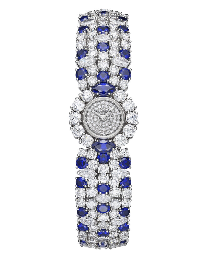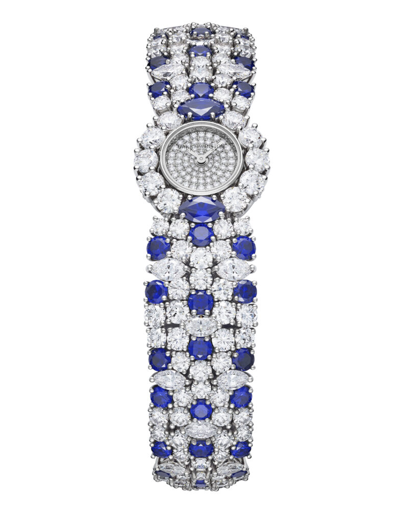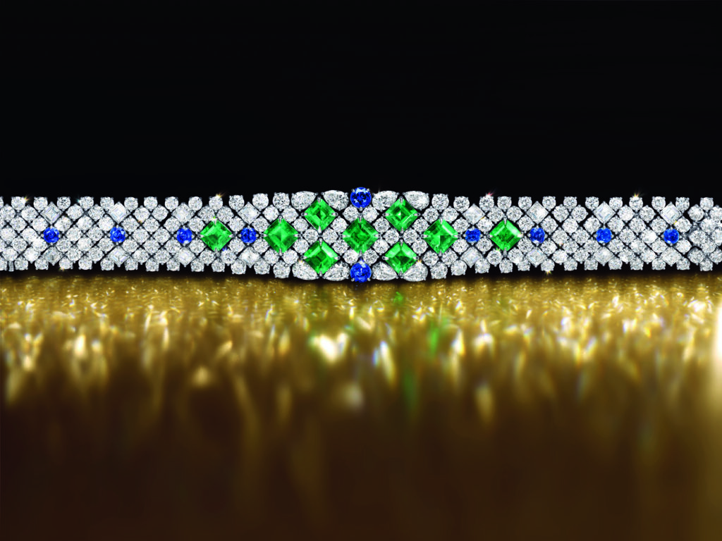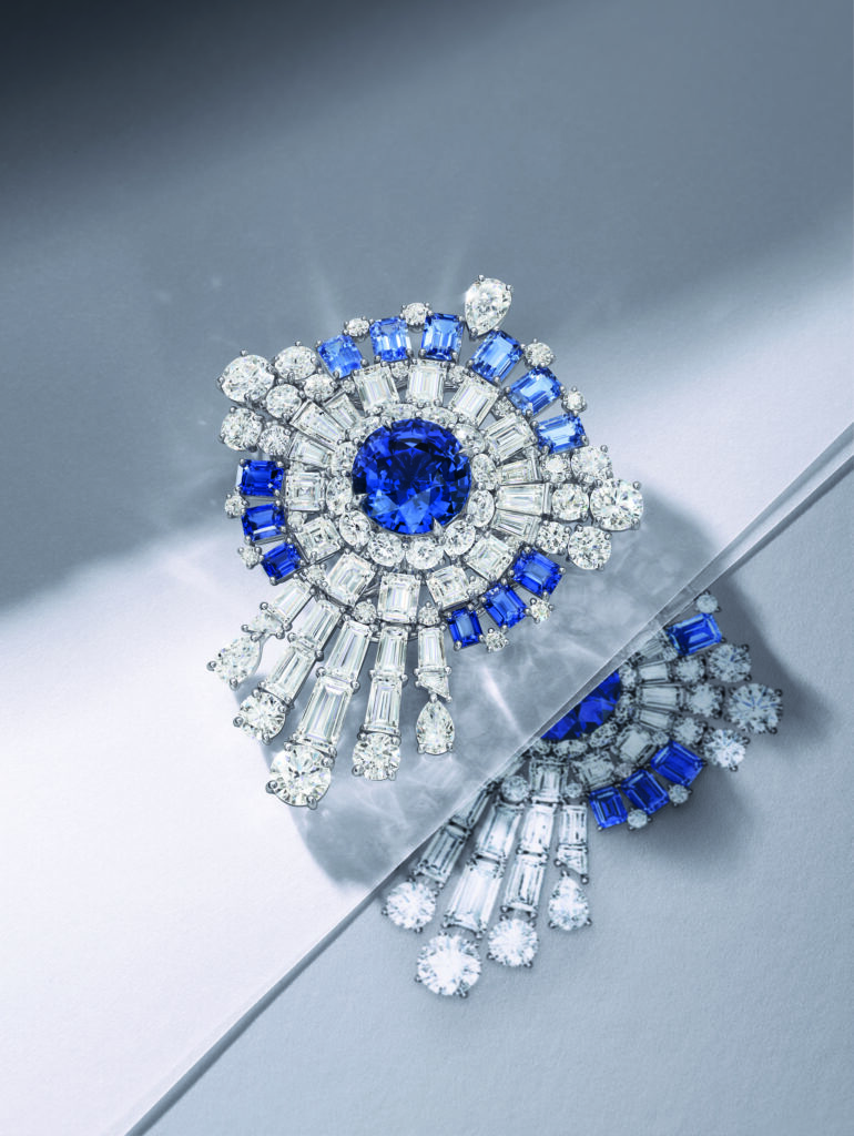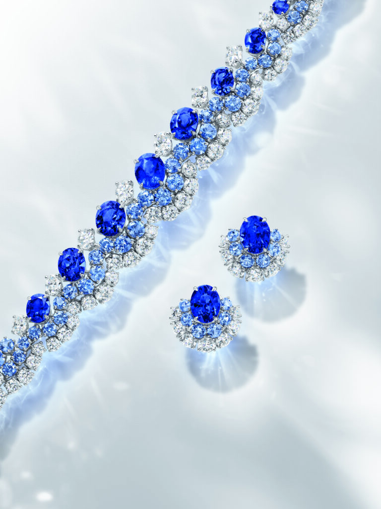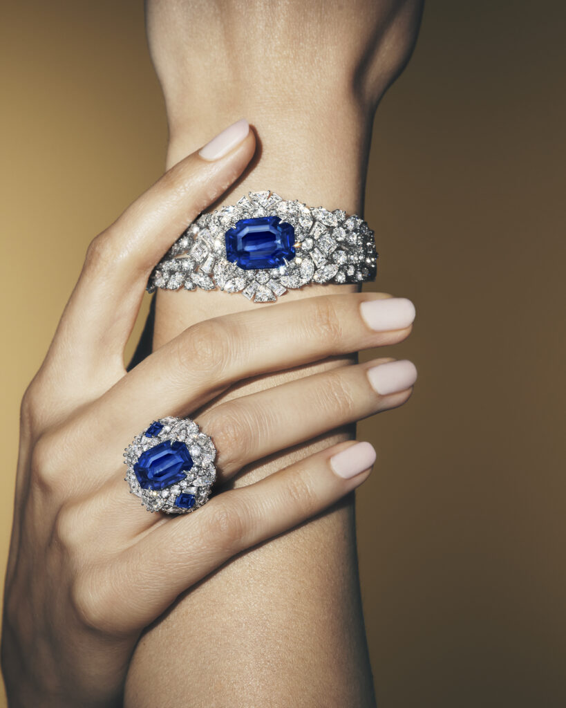 Cette philosophie culmine dans le volet « Rare Jeweler of the World », qui rend hommage à une pratique singulière du fondateur : l’acquisition de collections d’État ou privées pour en libérer les pierres. Winston n’hésitait pas à dessertir des joyaux historiques pour les retailler, les débarrassant de montures désuètes pour révéler leur éclat moderne. Cette approche radicale se matérialise dans le collier Cabochon Sapphire, dominé par un saphir pain de sucre de 65,61 carats. La pureté géométrique du cabochon, encadrée de diamants taillés sur mesure pour en épouser les flancs pyramidaux, illustre une maîtrise du volume où le luxe réside dans la soustraction du superflu.
