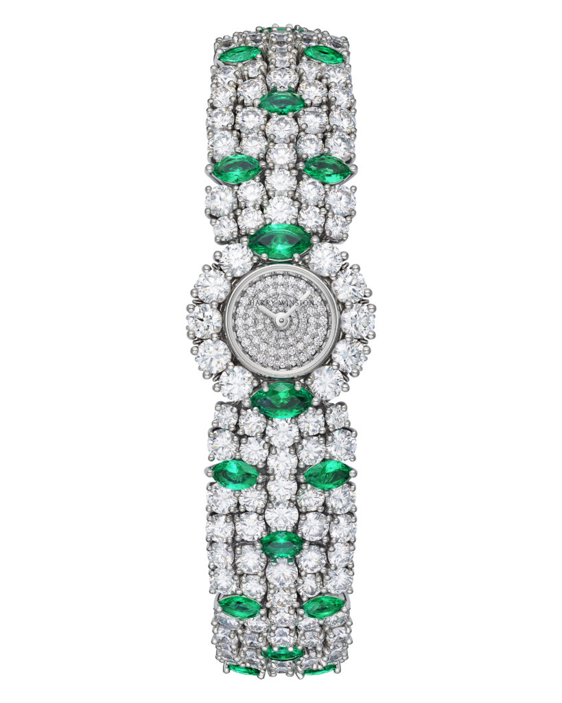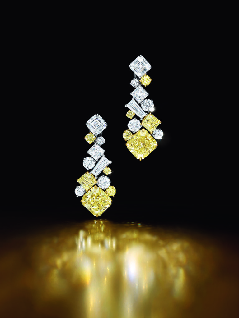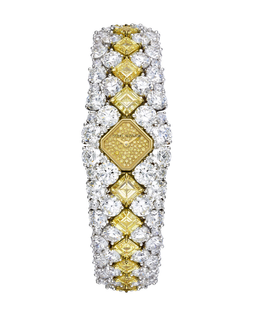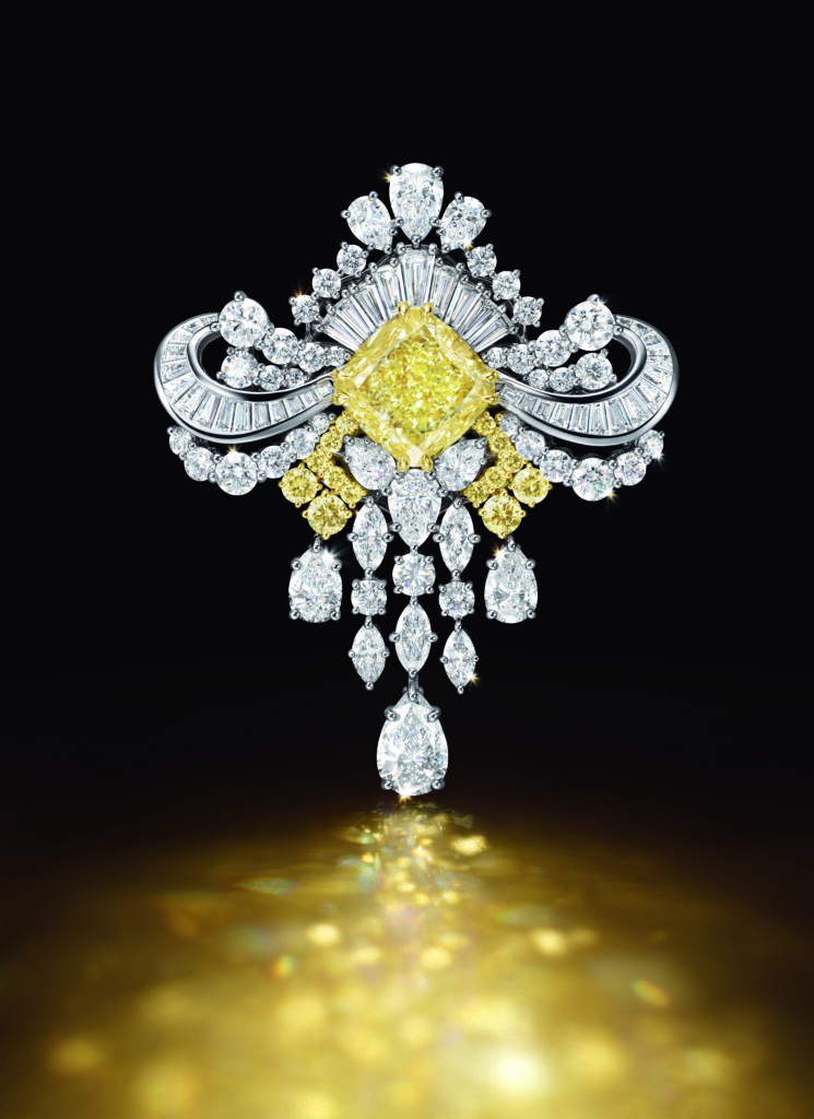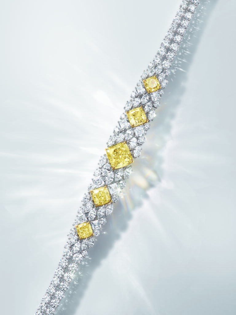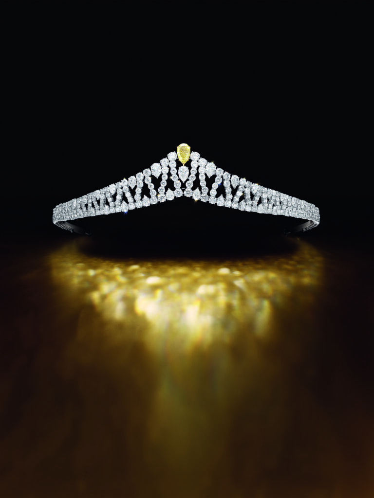 Le premier chapitre, « King of Diamonds », rappelle que l’audace d’Harry Winston résidait d’abord dans son instinct de chasseur de pierres brutes. Cette traque de l’exceptionnel trouve aujourd’hui son écho dans un collier défiant la gravité, où une tourmaline Paraíba triangulaire de 16,10 carats semble flotter au sein d’un cluster de diamants. L’architecture du bijou s’efface pour laisser la pierre dicter sa loi chromatique, un bleu électrique soutenu par un diamant jaune poire de plus de 5 carats. Ici, le sertissage n’est pas une contrainte technique, mais une ponctuation silencieuse qui laisse la gemme s’exprimer seule.
