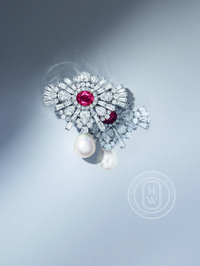Enfin, le titre de « Jeweler to the Stars » ne renvoie pas ici à la vanité des tapis rouges, mais à la science de la lumière. Harry Winston a très tôt compris que le glamour n’était pas une question d’accumulation, mais de cinétique. Les créations, comme la broche en rubis de 5,01 carats suspendue au-dessus d’une perle baroque, sont pensées pour le mouvement. Chaque diamant est une note dans une partition visuelle complexe, conçue pour capter le flash des photographes sous tous les angles. Dans cette collection, Harry Winston ne se contente pas de répondre à Marilyn ; il prouve que si les pierres pouvaient parler, c’est bien son langage qu’elles choisiraient.