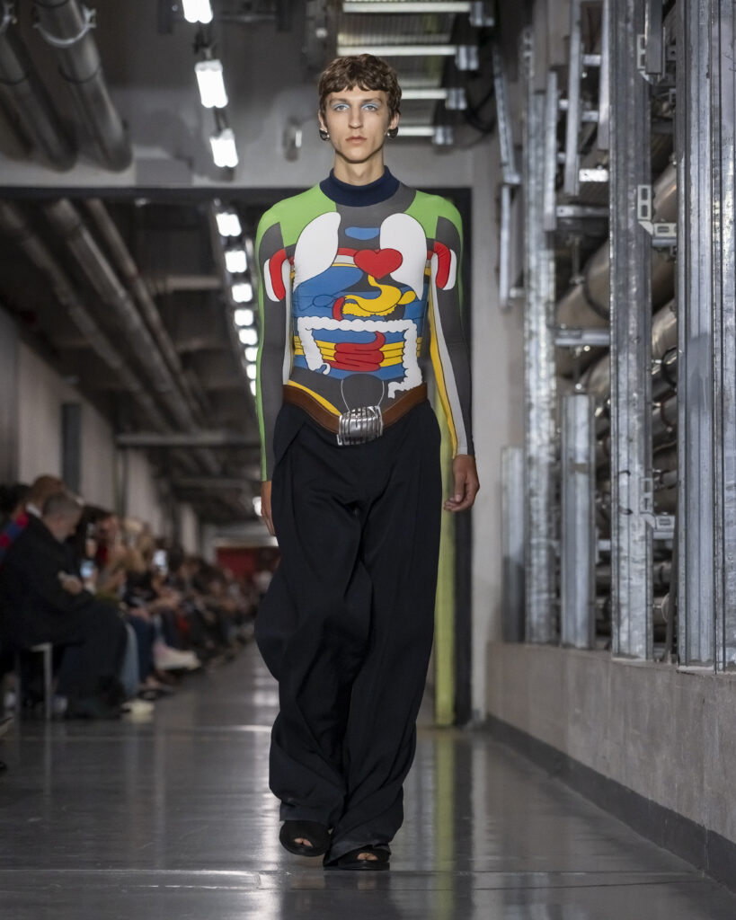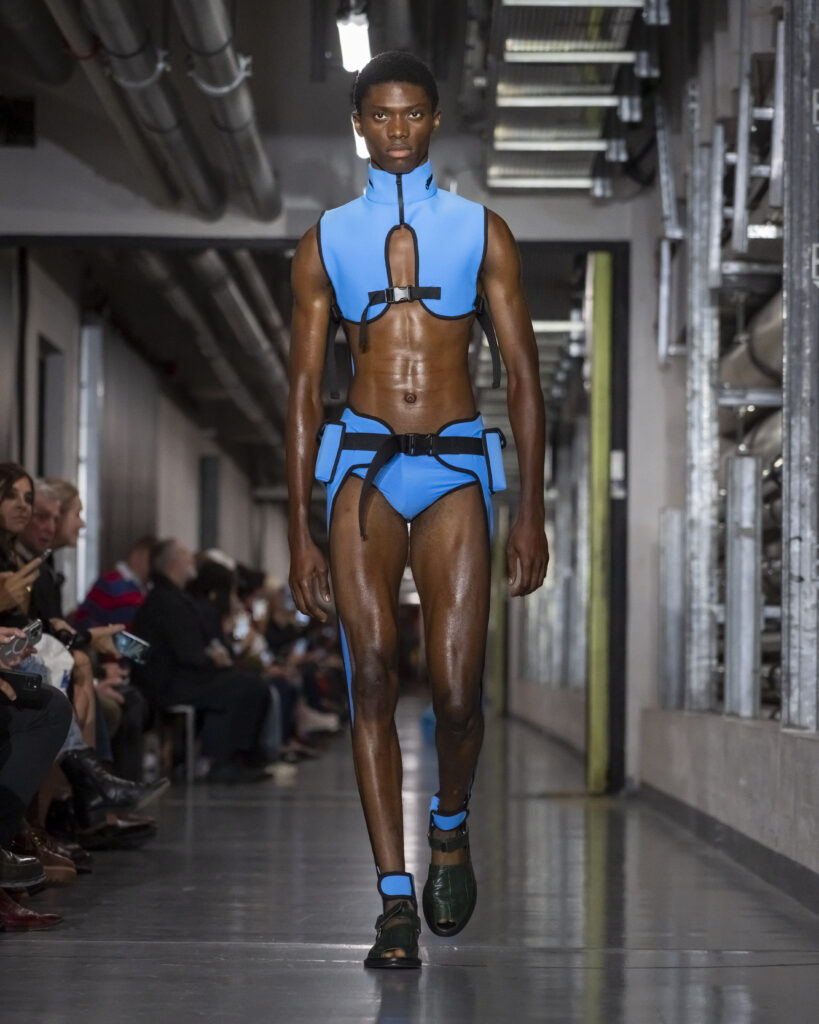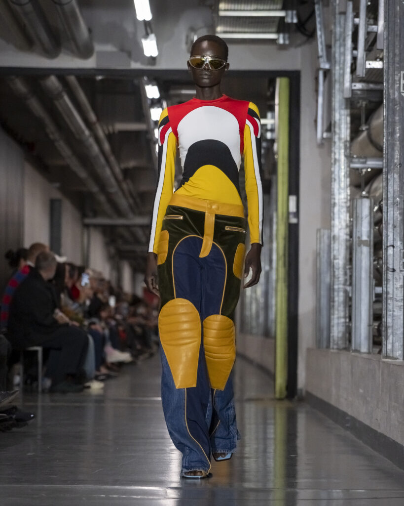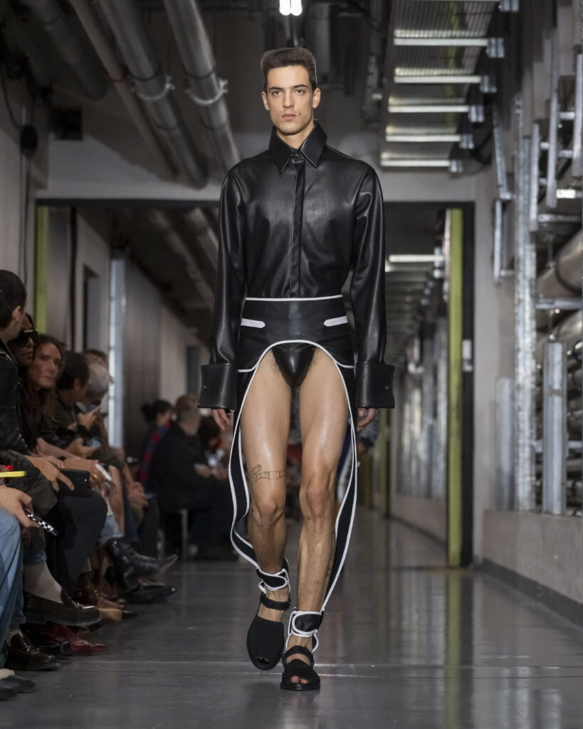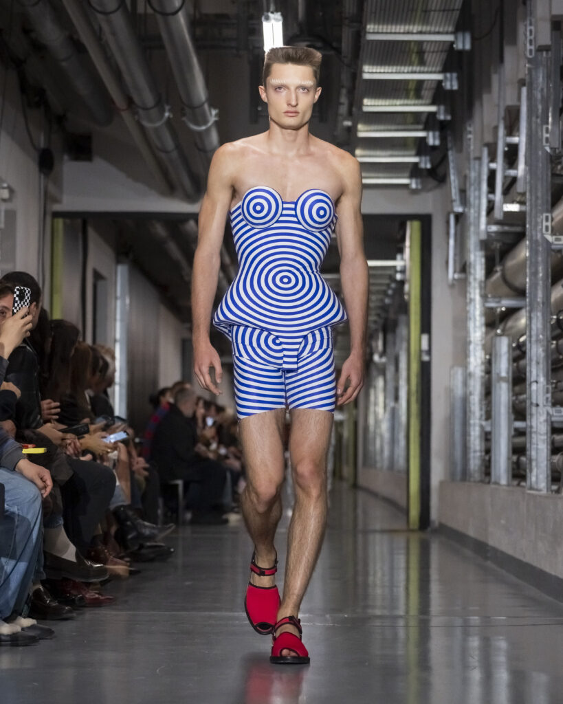 Il y a, dans le choix de ce titre, quelque chose qui dépasse le clin d’œil. Junior Gaultier, ligne seconde lancée en 1988 et abandonnée en 1994, fut le terrain d’expérimentation d’un couturier alors au faîte de son insolence. Des pièces accessibles, imprégnées de l’énergie des clubs, conçues pour une génération qui ne demandait pas la permission. Duran Lantink, trente-huit ans, n’a pas connu cette époque en âge de la vivre. Mais il l’a absorbée.