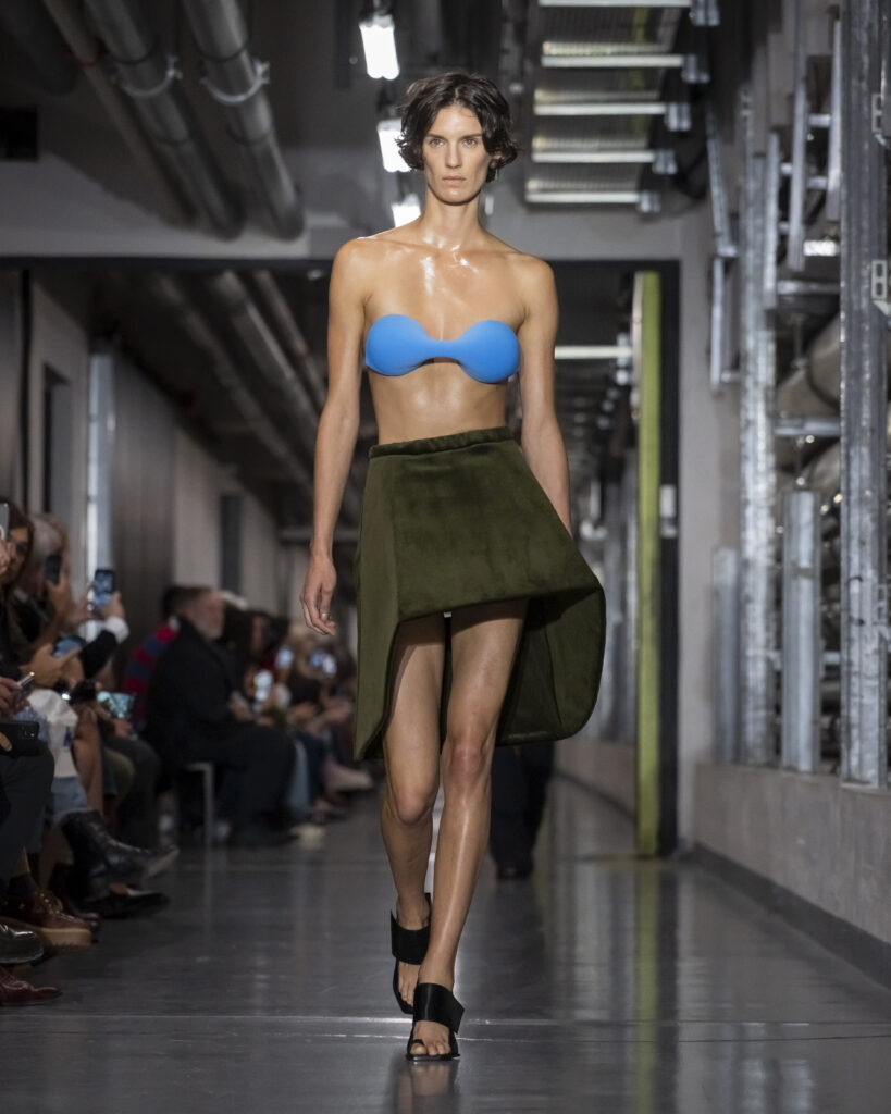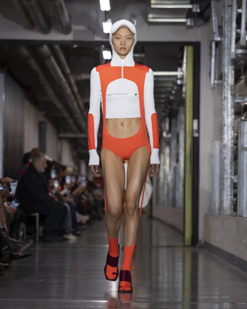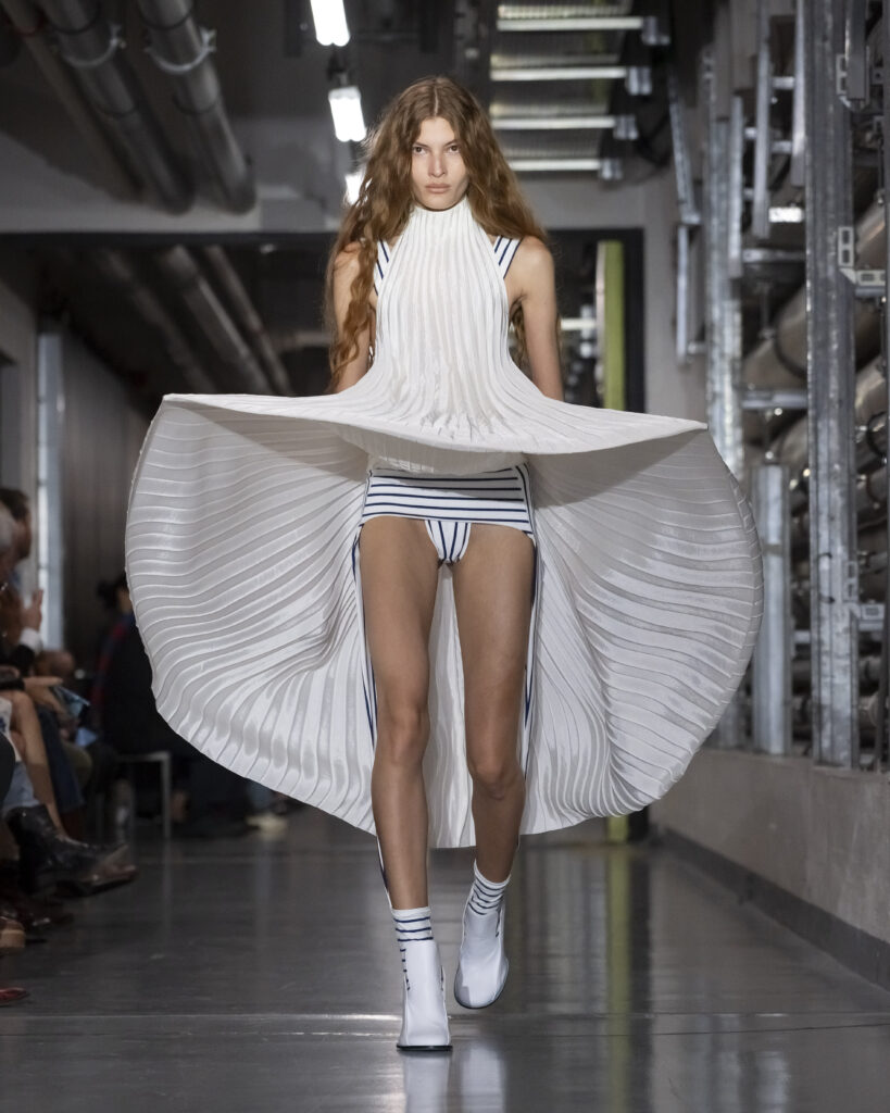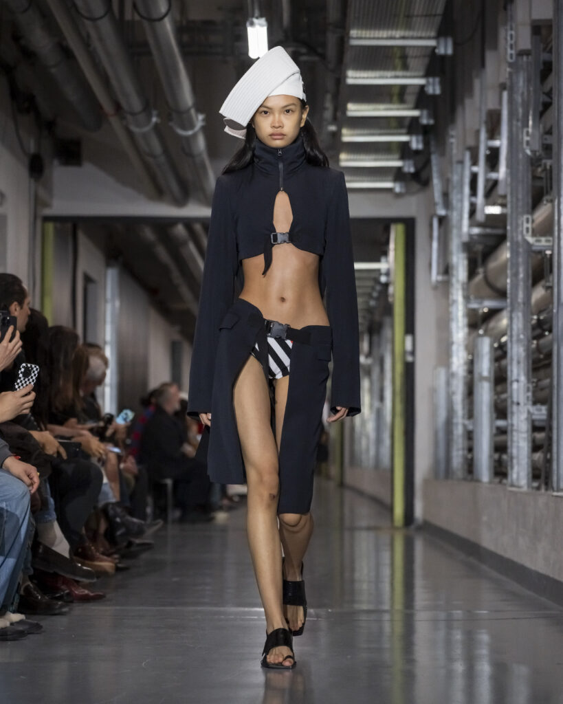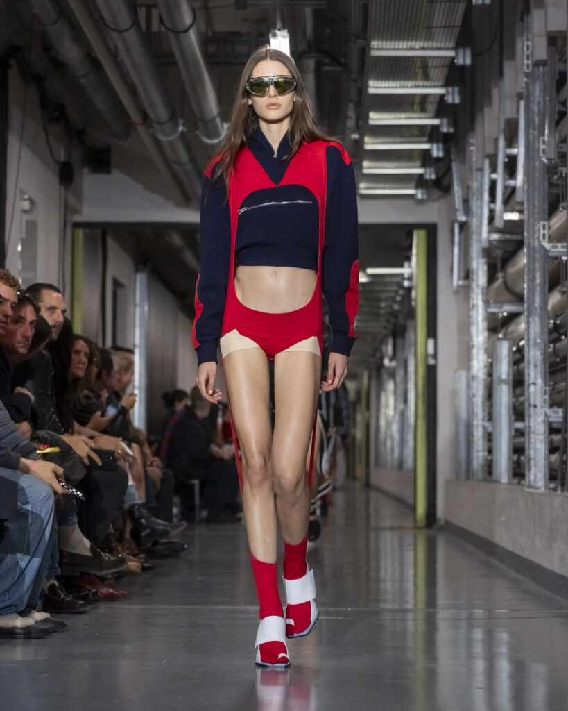 Il y a, dans le choix de ce titre, quelque chose qui dépasse le clin d’œil. Junior Gaultier, ligne seconde lancée en 1988 et abandonnée en 1994, fut le terrain d’expérimentation d’un couturier alors au faîte de son insolence. Des pièces accessibles, imprégnées de l’énergie des clubs, conçues pour une génération qui ne demandait pas la permission. Duran Lantink, trente-huit ans, n’a pas connu cette époque en âge de la vivre. Mais il l’a absorbée.