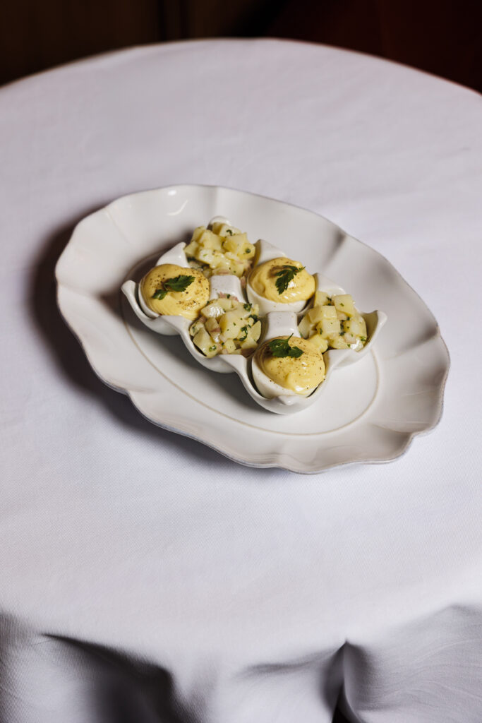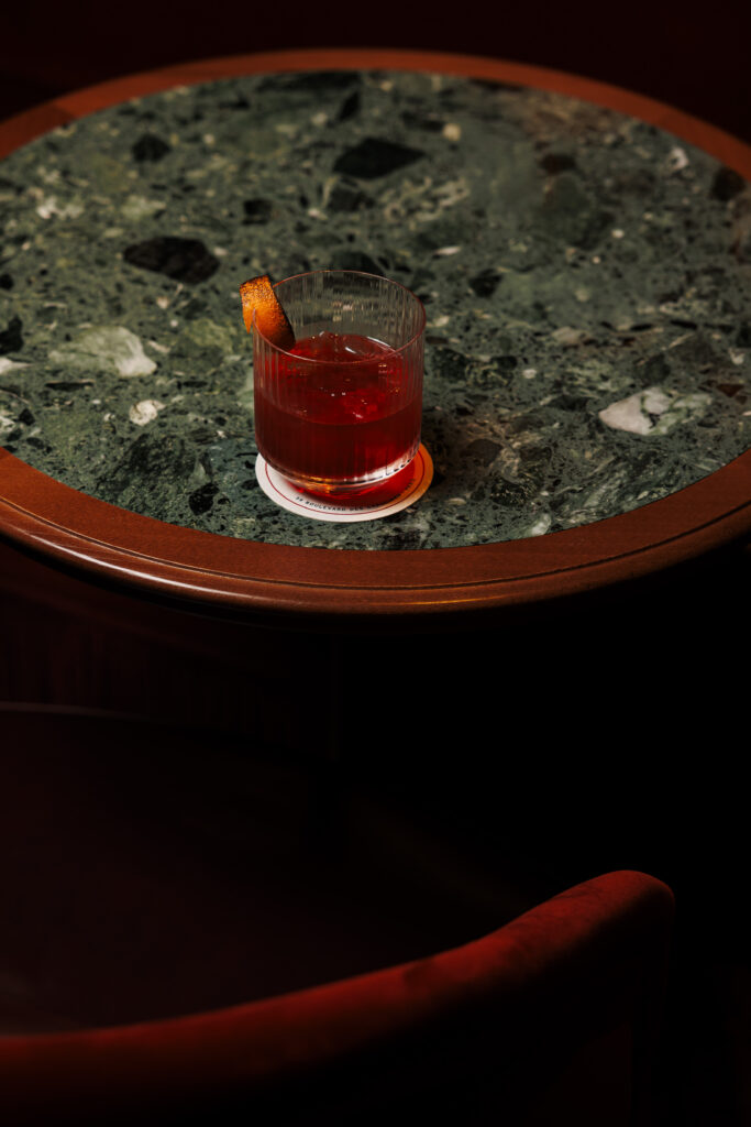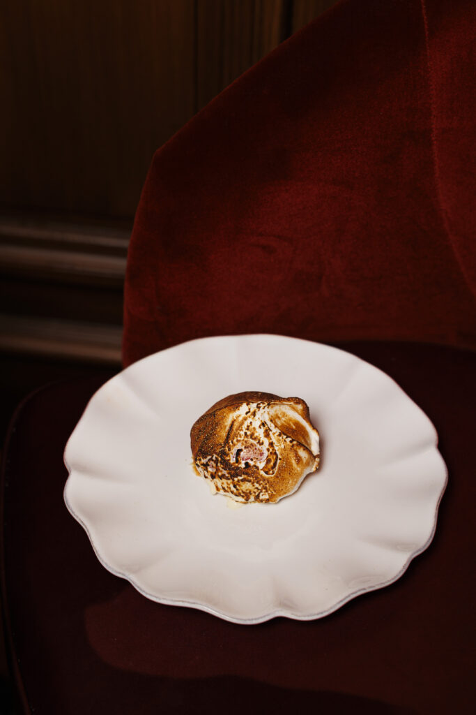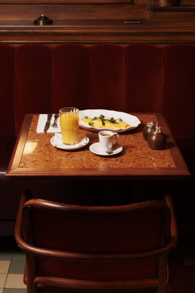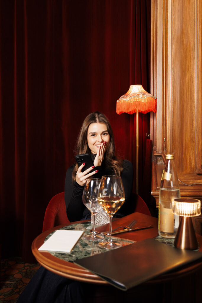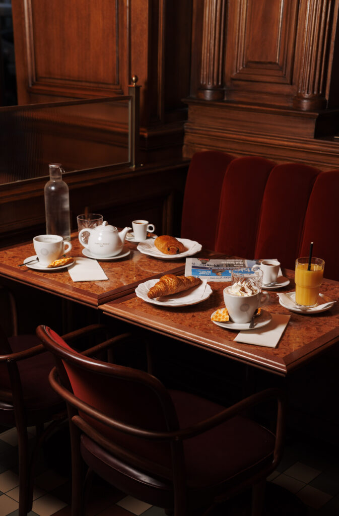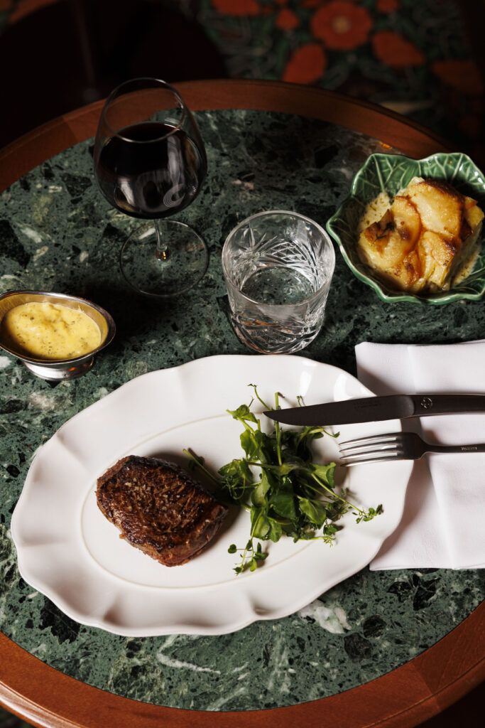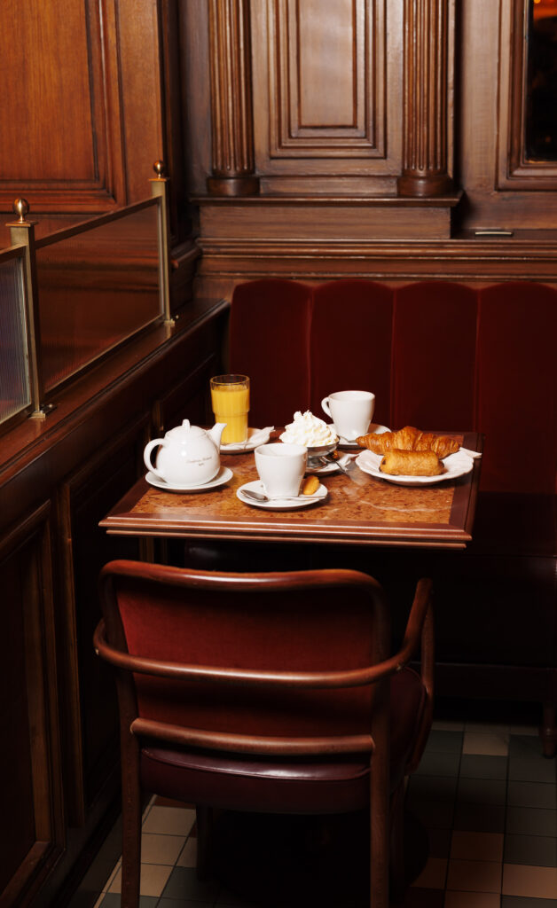 L’expérience se scinde en deux temps : l’effervescence de la brasserie au rez-de-chaussée, et l’intimité feutrée de l’étage. Là-haut, l’atmosphère se fait plus confidentielle, presque tactile. Les banquettes de velours et de cuir, déclinées dans des nuances de rouge bordeaux profond, invitent à la confidence, baignées par une lumière dorée et tamisée qui flatte les teints et les conversations.