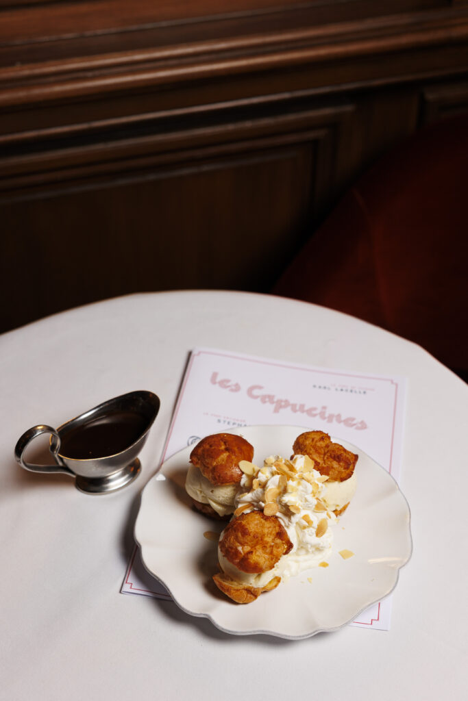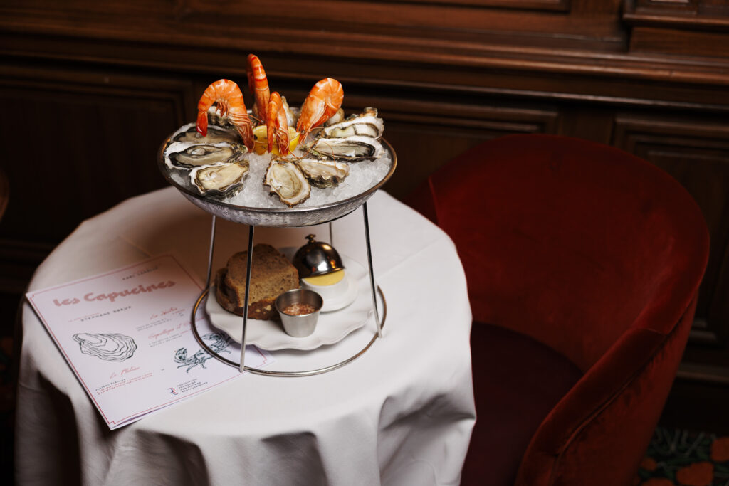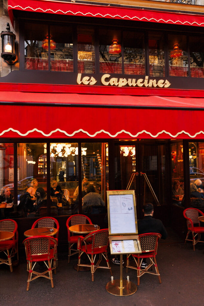 Parce qu’une brasserie parisienne se doit de vivre au rythme de la ville, Les Capucines se transforme chaque vendredi soir en club de jazz improvisé. De 21h00 à minuit, la contrebasse, la guitare et la trompette prennent possession des lieux. C’est dans cette atmosphère sonore et visuelle, entre un verre de vin et les dernières lueurs des bougies, que l’adresse révèle toute sa magie : celle d’un lieu vivant, élégant, et résolument tourné vers le plaisir de l’instant.