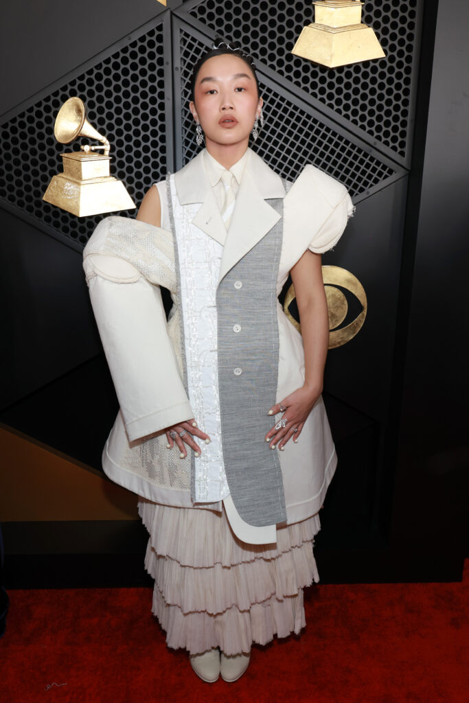 Los Angeles, nuit du 1er février. Sur le tapis de la Crypto.com Arena, la 68e édition des Grammy Awards déployait son langage vestimentaire dans un camaïeu noir et blanc scandé d’éclats de neutralité. Pas de strass en rafale, mais une sobriété calculée — celle qui laisse entendre que le vêtement a quelque chose à dire.
