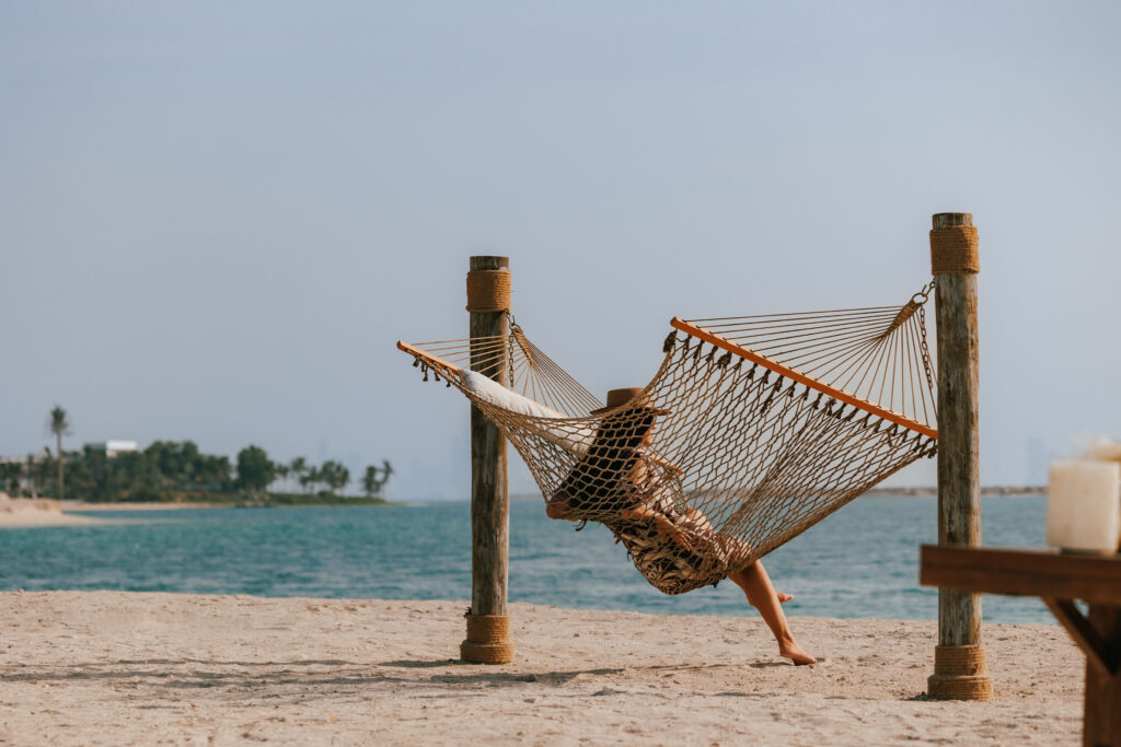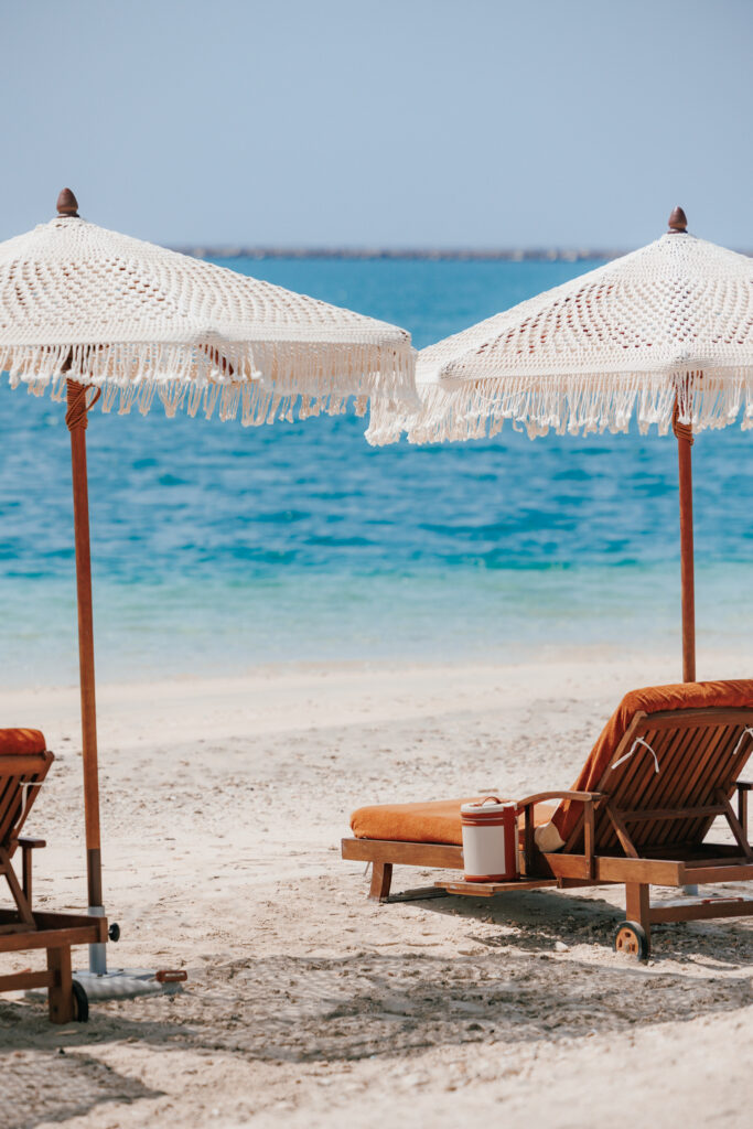 À 11h, la croisière débute depuis Marsa Marina, et c’est au zénith que le programme s’intensifie : déjeuner en trois temps signé par le Chef Saverio Sbaragli, étoilé Michelin, servi dans un cadre naturel d’une sobriété luxueuse. Sur la plage immaculée, les transats haut de gamme voisinent avec des terrains de pétanque ou de volley, tandis que paddle et kayak attendent les amateurs d’évasion active. Un retour à 15h permet de savourer les derniers instants à bord, face au panorama envoûtant de Dubaï.