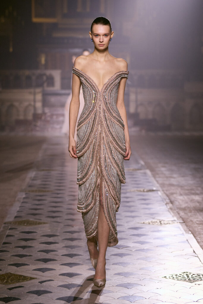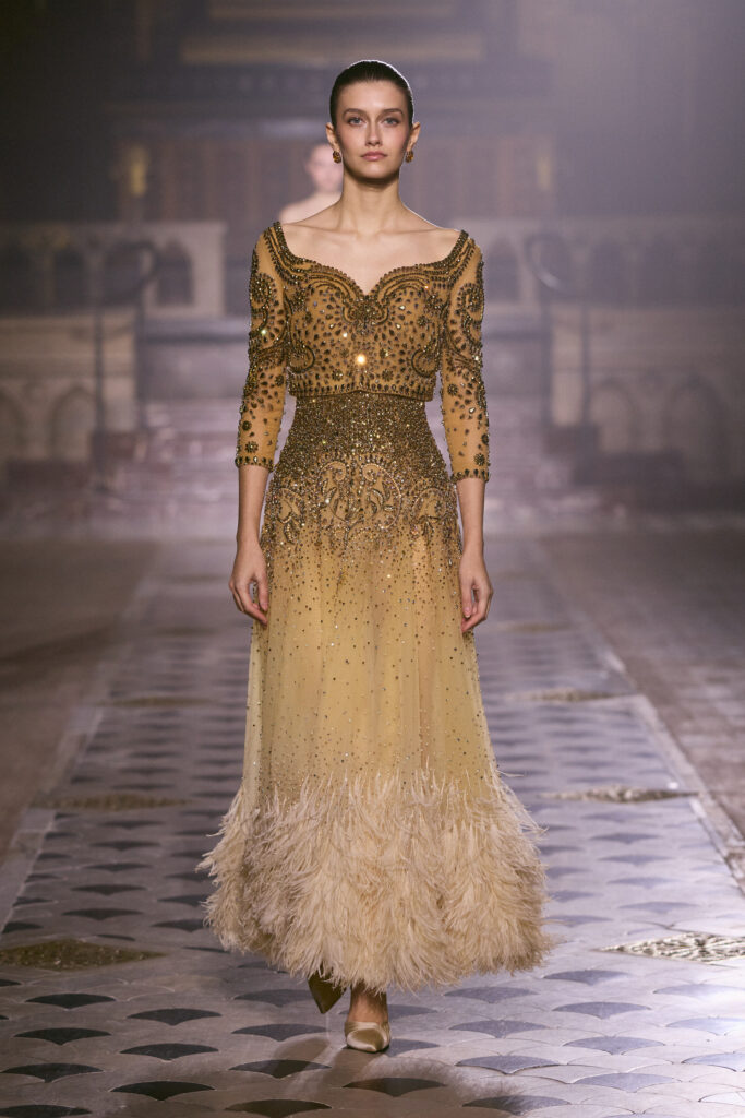 La collection transmet subtilement un équilibre entre luxe et honnêteté intérieure, entre gestes grandioses et silencieux. Chaque robe semble inviter au dialogue, à la rencontre avec soi-même et avec les autres. L’amour y est présenté comme une pratique, non comme une simple réflexion, comme la capacité de manifester soin et attention dans les détails. Hobeika souligne que la véritable grâce naît de la capacité à continuer d’aimer malgré la fatigue, le doute ou l’absence de reconnaissance. Sur le podium, les modèles incarnent l’idée que l’homme existe à travers l’amour et le don, à travers la présence et l’attention portée aux autres.