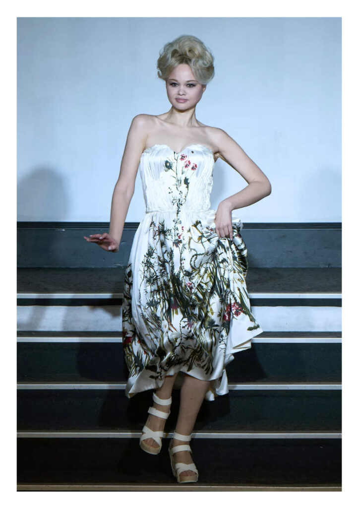 L’été 2026 chez Franck Sorbier ne se contente pas de convoquer l’esthétique florale ; il en dissèque la structure à travers le prisme de la mémoire cinématographique et scénique. Inspirée par les apparitions de Marlène Dietrich et de Barbara, cette collection place la fleur non comme un ornement, mais comme une métaphore de la vérité à fleur de peau et du triomphe.