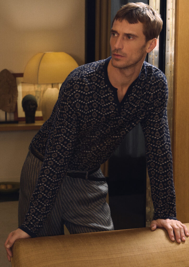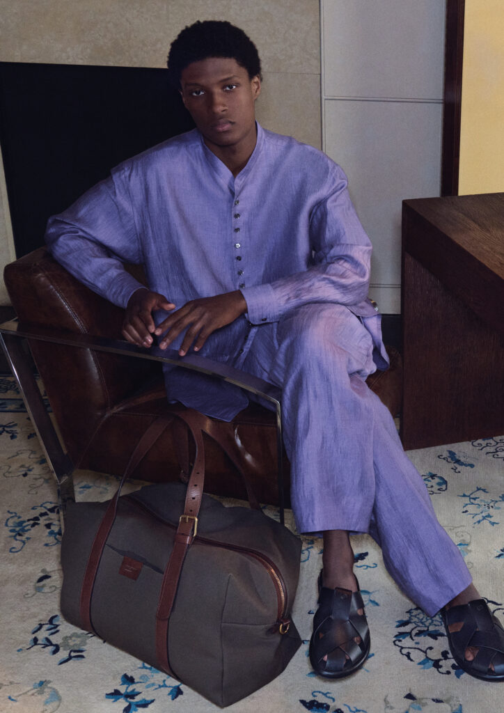 Le dossier évoque des « costumes structurés, des robes douces et fluides, des pulls et des chemises qui suivent le corps avec aisance ». Cette description, volontairement générique, pourrait s’appliquer à trente années de collections Armani. C’est précisément le propos : montrer que la dernière collection n’est pas une rupture mais un prolongement. Le vêtement Armani a toujours reposé sur une géométrie discrète — épaules construites sans exagération, tombé fluide, palette neutre — et sur un rapport au corps qui évite à la fois la contrainte et le laisser-aller. Cette ligne médiane, difficile à tenir dans un secteur qui valorise les propositions radicales, constitue l’identité technique de la Maison.