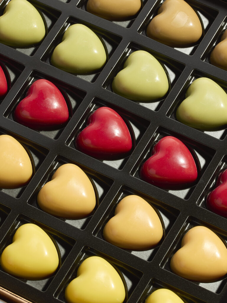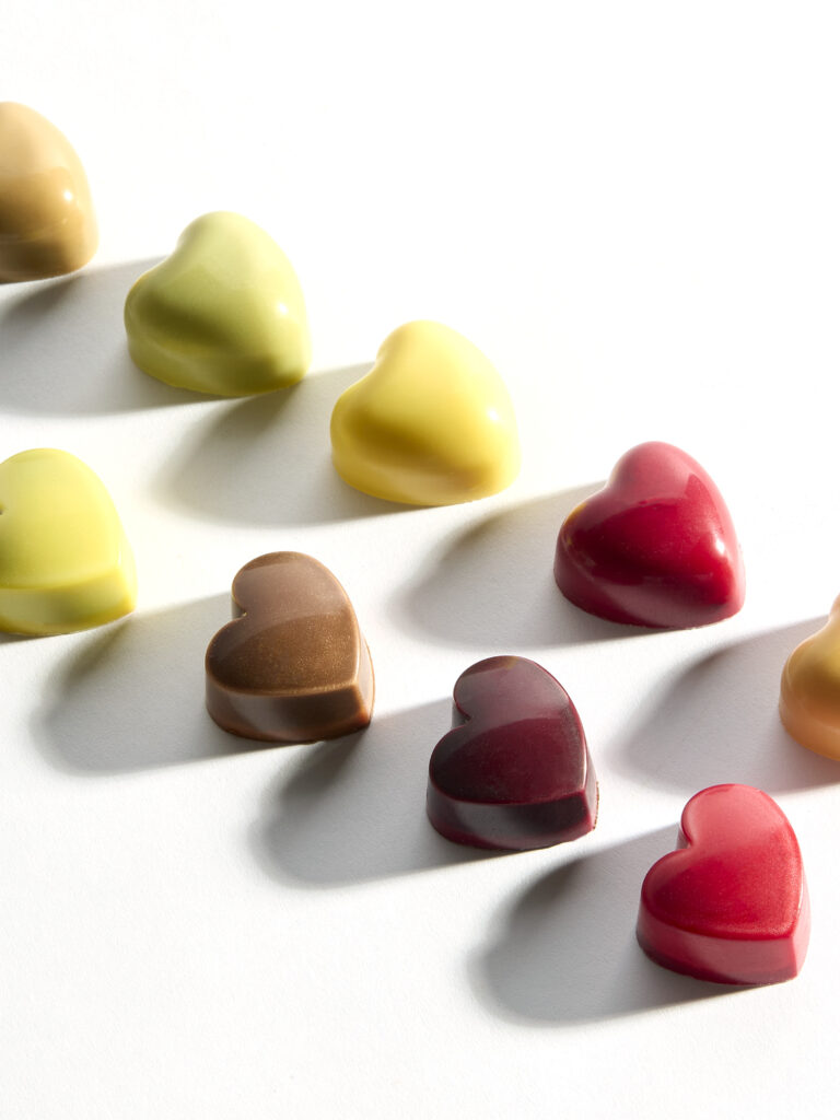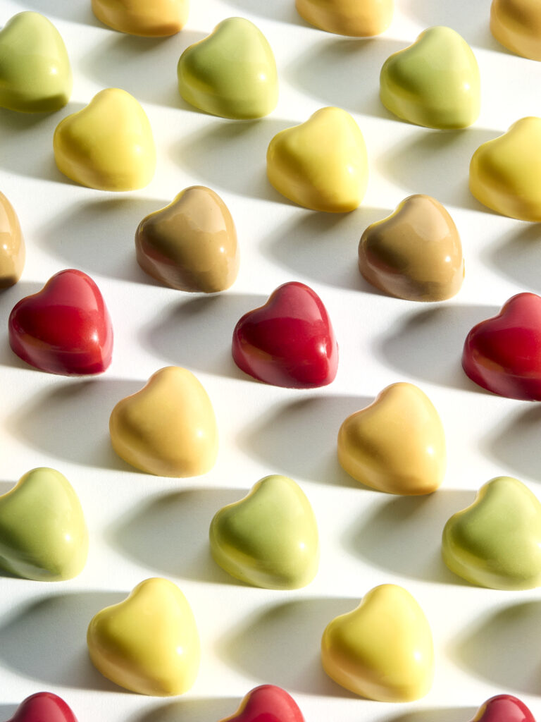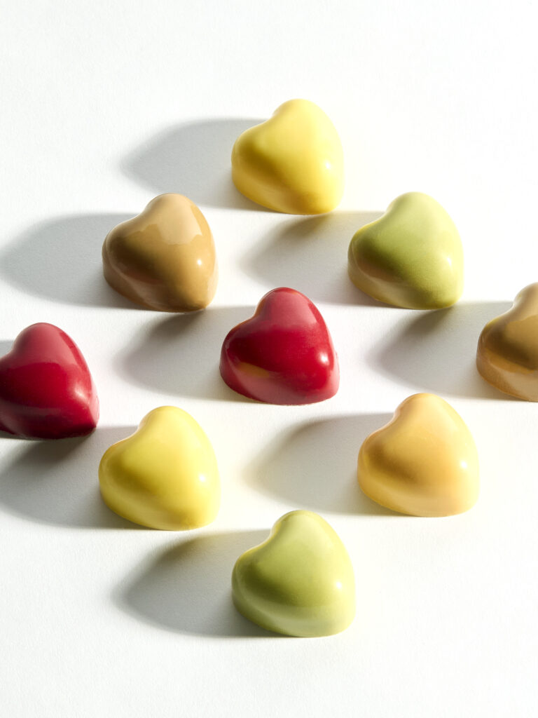Ce que Pierre Marcolini propose avec « De tout Cœur » — cinq ganaches aux colorants naturels issus de poudres de fruits et légumes, disponibles du 9 janvier au 20 février — c’est une sortie de ce schéma. Les chocolats ne sont plus présentés comme des cadeaux obligatoires mais comme des objets de plaisir autonome. « À partager, à offrir, ou à savourer rien que pour soi », précise le communiqué. Cette dernière option, loin d’être une simple clause de style, constitue le cœur du repositionnement. Elle légitime l’achat pour soi-même d’un produit historiquement codé pour l’autre.