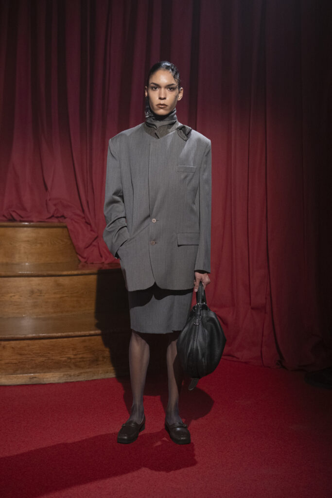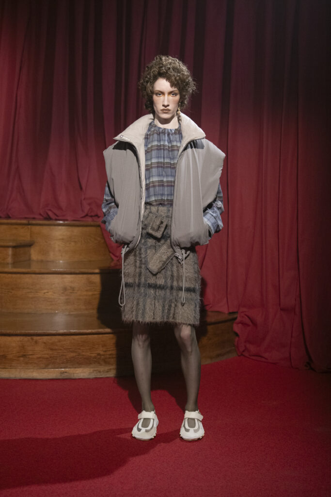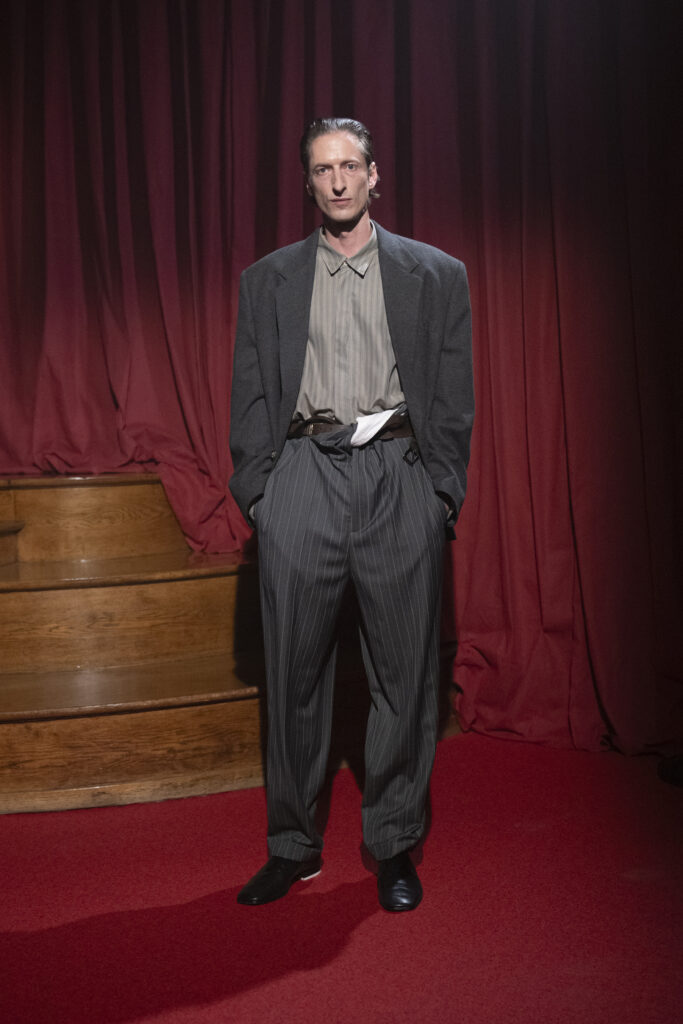 C’est par un sifflement que s’ouvre ce chapitre. Une performance d’Elena Somaré sur une composition d’Aase Nielsen, rappelant les appels partisans ou les sérénades de rue. Ce choix n’est pas anodin : il pose le décor d’une saison « unplugged », débranchée, où le vêtement doit exister sans l’électricité du marketing, simplement par l’épaisseur de l’air qu’il déplace.