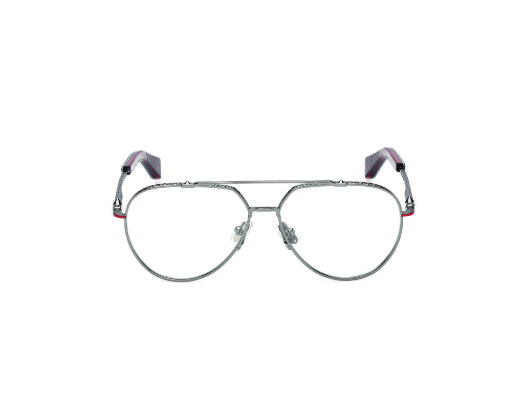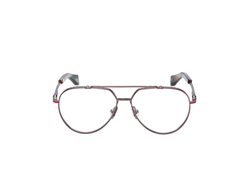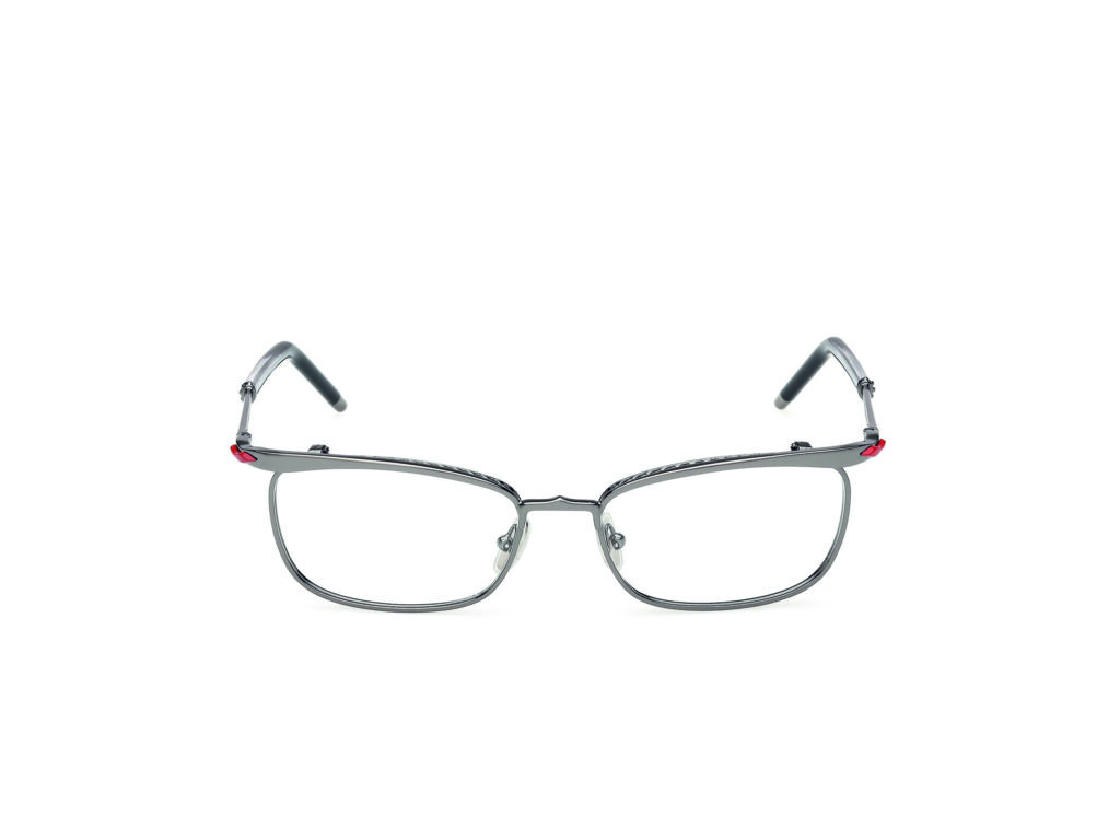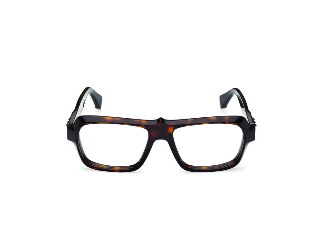 C’est précisément ce que fait cette collection de lunettes. Les modèles féminins — Kate, Hot Chick, Dolly — empruntent leurs noms aux iconiques escarpins de la Maison. Les formes cat-eye sculptées, les lignes géométriques anguleuses, les détails de cloutage décoratif reprennent le vocabulaire des chaussures et de la maroquinerie. Les modèles masculins — Georges, Greggo, Anouk — suivent la même logique avec des lignes plus structurées, des ponts métalliques travaillés, un traitement plus architectural. Dans tous les cas, on sent qu’il s’agit d’objets pensés par quelqu’un qui connaît le travail du cuir, la sculpture des volumes, l’équilibre entre audace formelle et portabilité réelle.