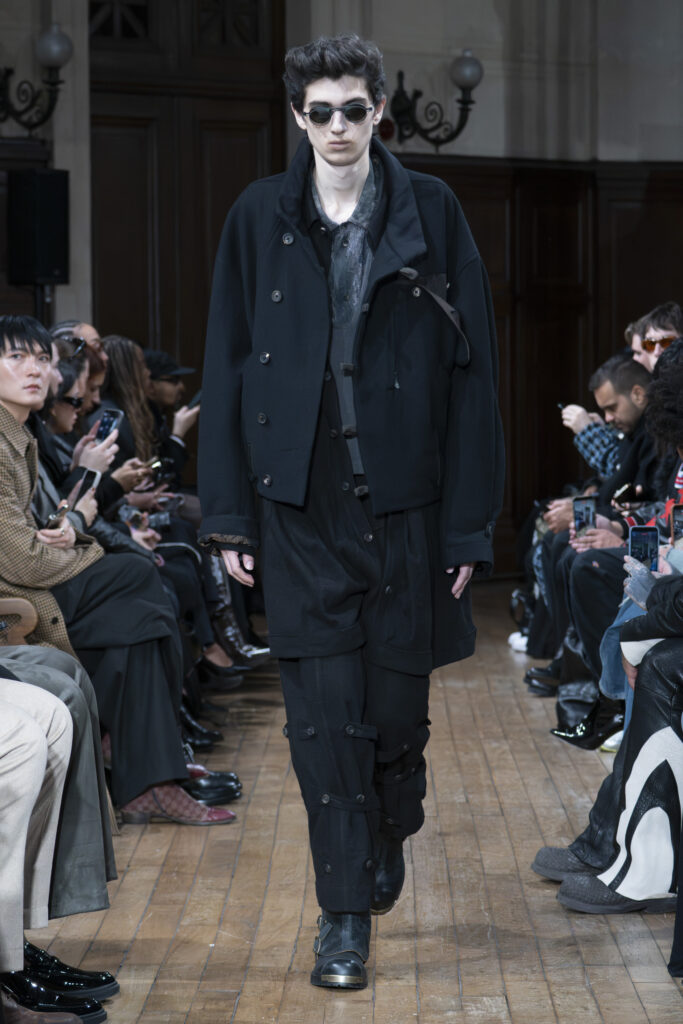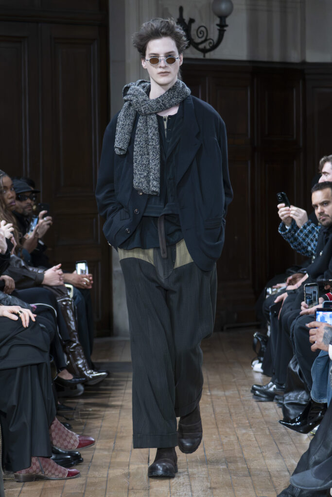 Si l’approche est intellectuelle, le résultat reste ancré dans l’usage. La collaboration avec iolom pour les éléments métalliques et Rigards pour la lunetterie s’inscrit dans cette quête de fonction. Les accessoires — chaussures en couches superposées, cuirs tressés — évitent l’ornement pour servir la structure. C’est une vision du luxe où la profondeur se crée par l’accumulation discrète de couches, créant du volume sans imposer de poids.