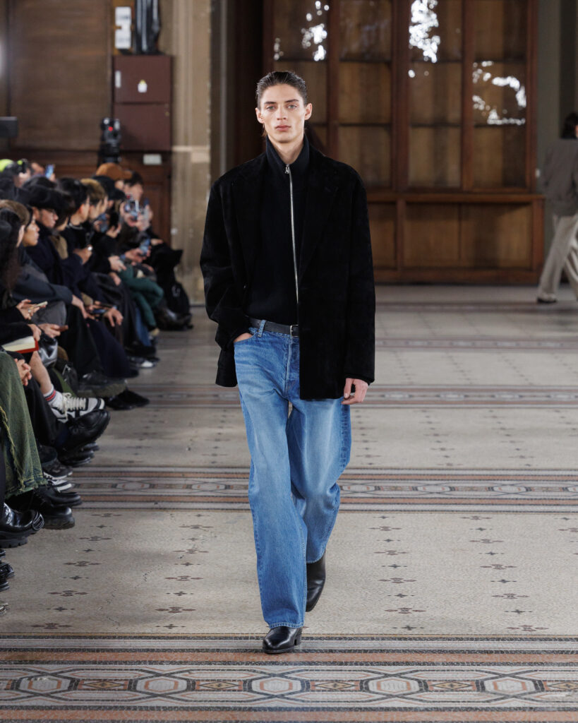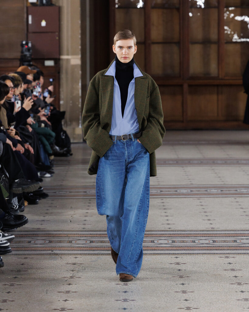 Le denim lui-même subit un traitement d’archiviste : les fils de chaîne teints en corde conservent un cœur blanc, promettant une patine qui documentera l’usage plutôt que de subir l’usure.
