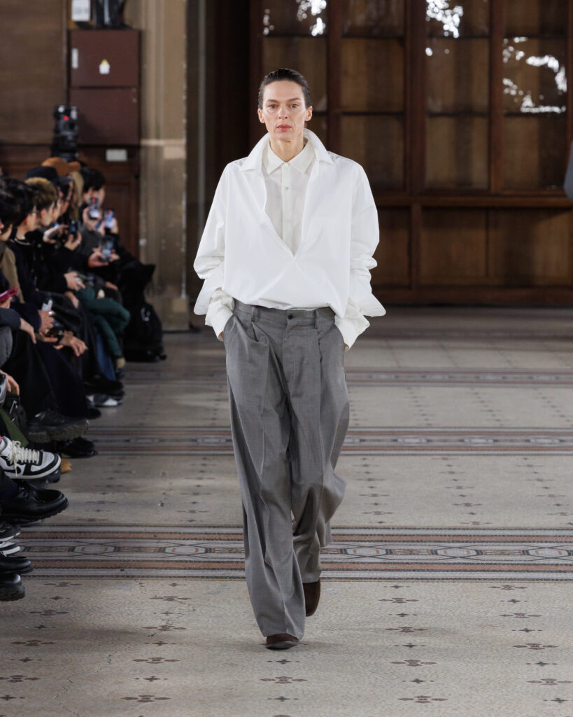 Quelques jours avant d’affronter le jury du Prix LVMH, Kiichiro Asakawa présentait à Paris une collection qui tourne le dos au spectaculaire. Une leçon de silence et de texture qui puise sa noblesse dans l’ordinaire tokyoïte.