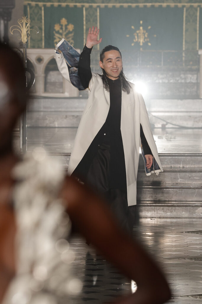 Pour sa collection haute couture printemps-été 2026, le seul créateur japonais du calendrier officiel parisien a présenté un défilé de quinze minutes sans musique — où le son provenait de milliers de pièces en céramique façonnées à la main. En coulisses, une innovation discrète : une encre transparente qui empêche la soie de s’effilocher.