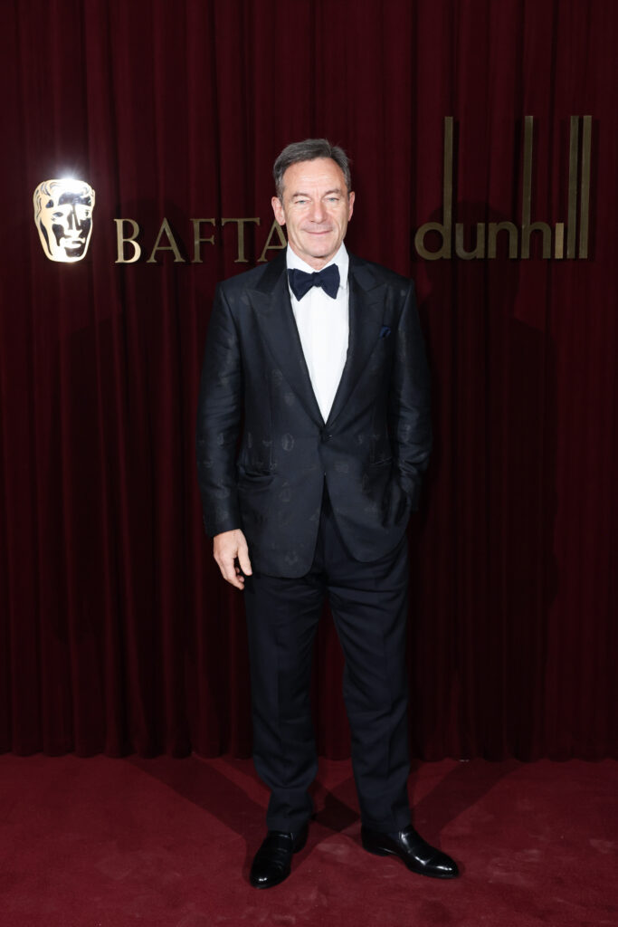 Les noms sont précis : Tramell Tillman, Jason Isaacs, Henry Golding, Brian Cox, Jonah Hauer-King, Archie Madekwe — et plus loin dans la salle, Aidan Turner, David Harewood, Alex Hassell, Fabien Frankel, Harry Lawtey, Jeremy Irvine, Akinola Davies Jr, Robert Aramayo. Chacun en dunhill. Les crédits Getty Images le confirment sobrement : « Look and shoes: DUNHILL. »