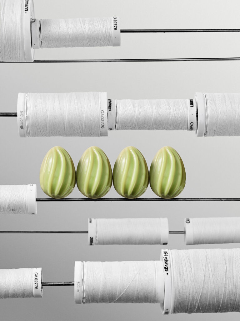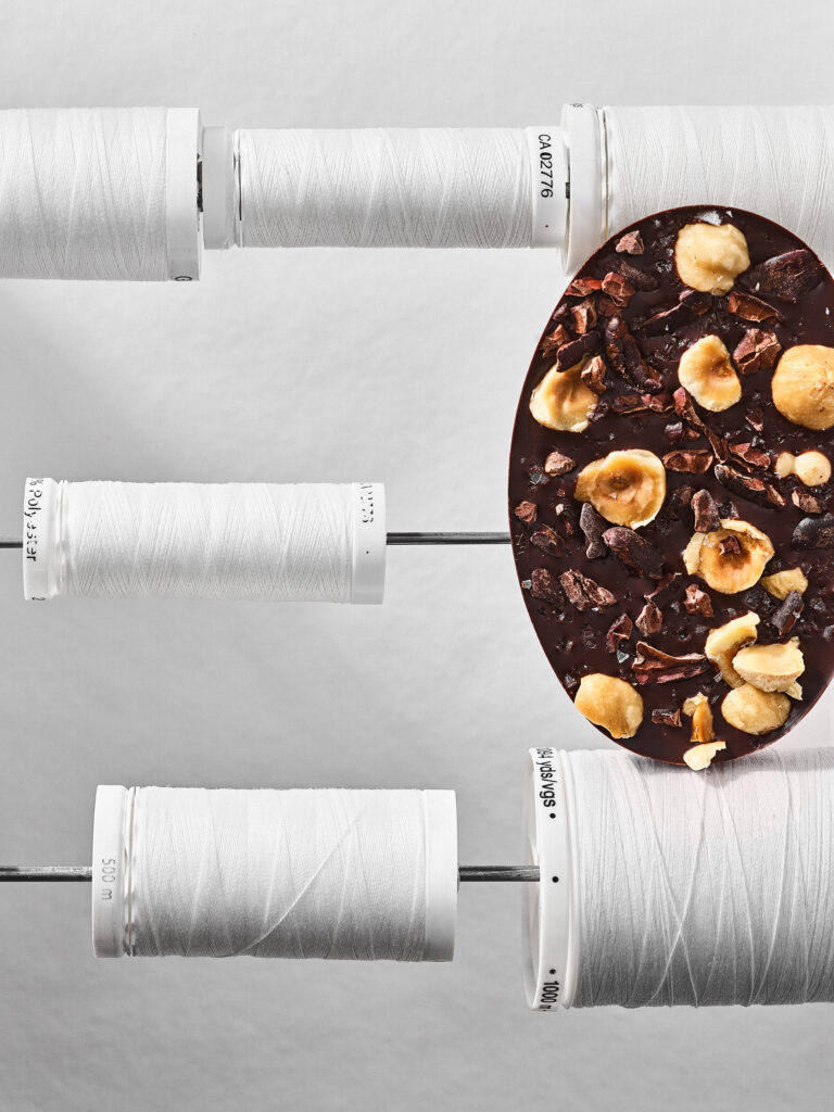 Marcolini s’approvisionne directement auprès de producteurs indépendants : Cuba, Indonésie, Inde, São Tomé & Príncipe, Pérou, Venezuela, Madagascar, Chine. L’Œuf Haute Couture XL utilise des fèves d’Équateur et de São Tomé. Noisette du Piémont, pistache d’Iran, vanille de Madagascar complètent la sélection.