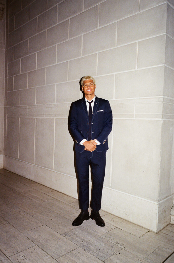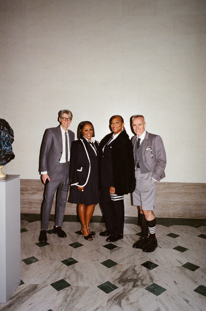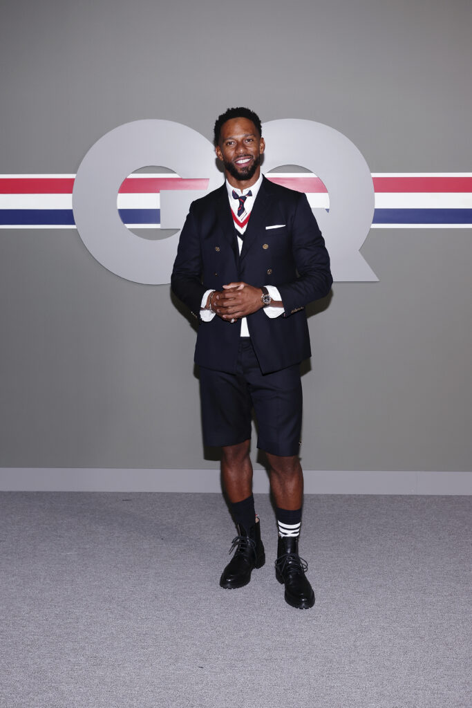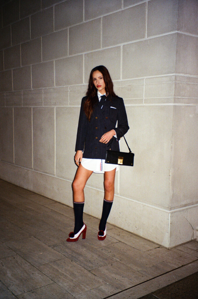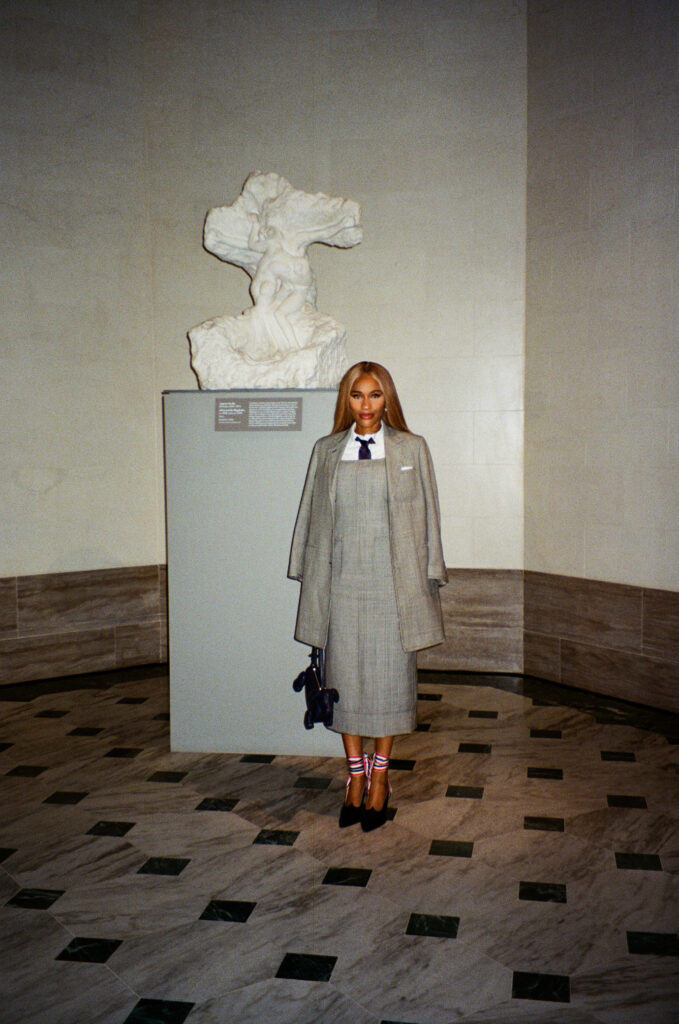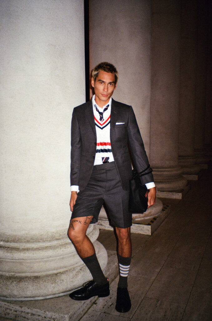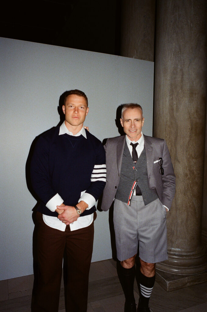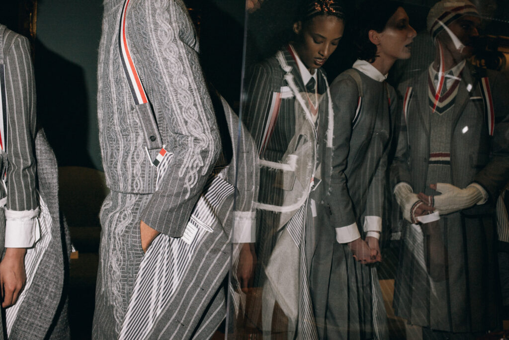 Le decor n’est pas un simple joli fond. Le show se tient deux jours avant le Super Bowl LX, et le casting enfonce le clou: des joueurs NFL, dont DeAndre Hopkins et Justin Jefferson, portent les silhouettes. Browne connecte explicitement la collection a une « quete d’excellence » – c’est moins l’athleisure que l’athletisme comme discipline mentale, version tailoring. Thom Browne Fall 2026 Collectio…
