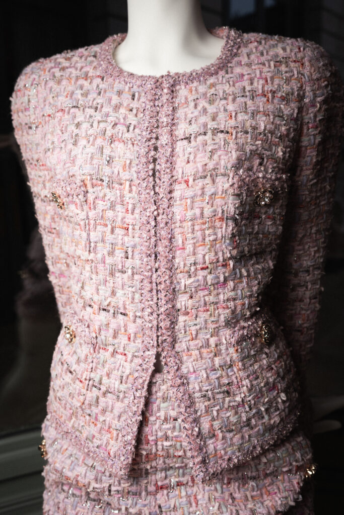 Chez Weill, la veste n’est pas un motif. C’est une méthode. Depuis les années cinquante, elle structure un vestiaire qui s’adresse à la Parisienne sans la figer. La collection FW26 assume ce socle et le travaille par déplacement. Les tweeds sont omniprésents — étoffes texturées, parfois aériennes — mais jamais nostalgiques. Les ourlets sont renforcés de chaînes pour l’aplomb, les épaules restent étroites, les lignes nettes. Rien d’ornemental : des décisions de coupe.