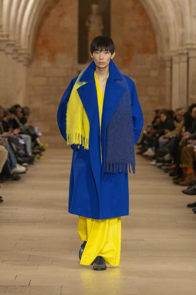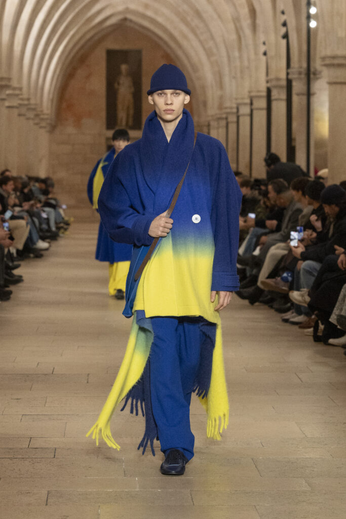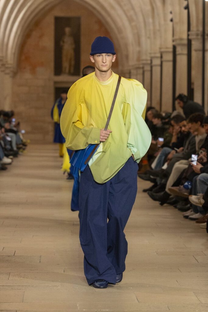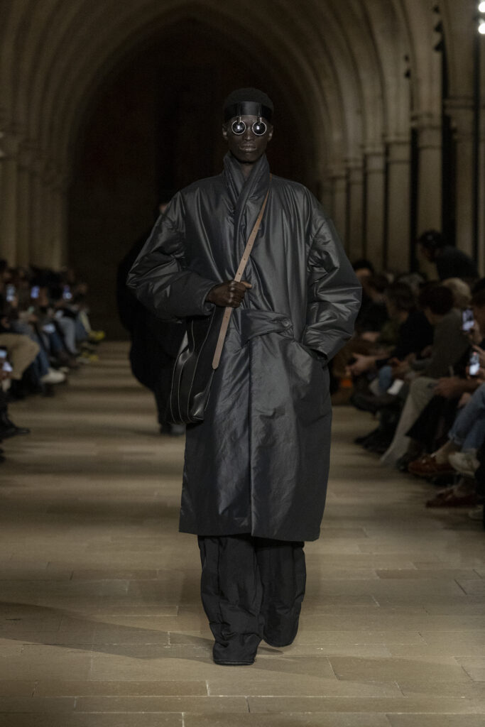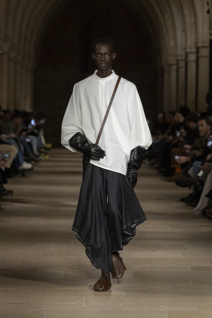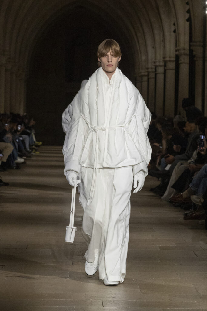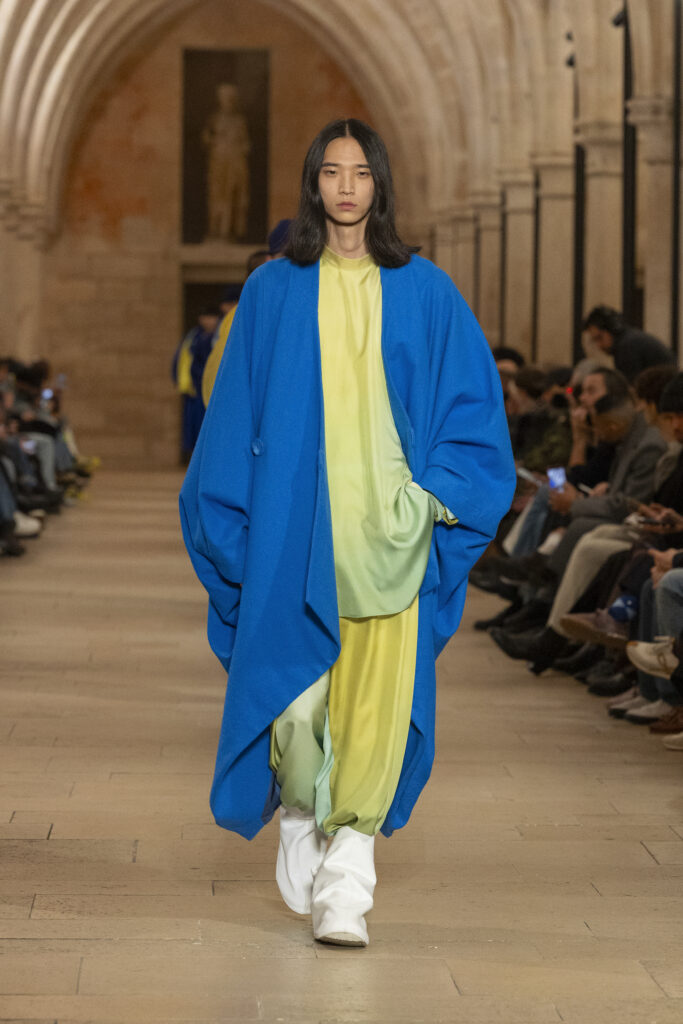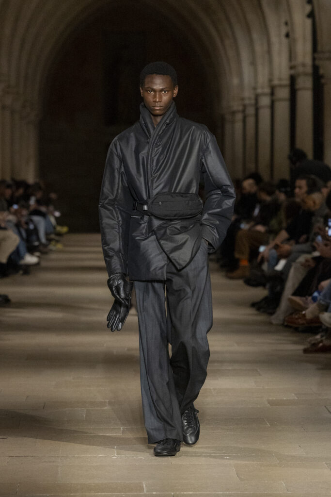 Au Collège des Bernardins, école cistercienne du XIIIe siècle, IM MEN a présenté le 22 janvier une collection fondée sur une contrainte : tout naître d’un unique rectangle de tissu. La réponse dépasse la rhétorique du minimalisme.