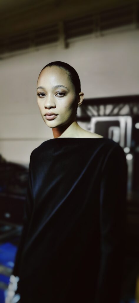 Le MatteTrance Lipstick, dont la teinte Elson est utilisée chez Khaite, appartient à une formulation à haute pigmentation qui sèche en mat sans déshydrater. Sa longévité sur le plateau — plusieurs heures sous des lumières de défilé à forte chaleur — est une contrainte technique que peu de formules tiennent réellement. Le choix d’un mat chez Khaite n’est pas esthétique uniquement : c’est aussi une question de résistance du résultat dans le temps de la présentation.