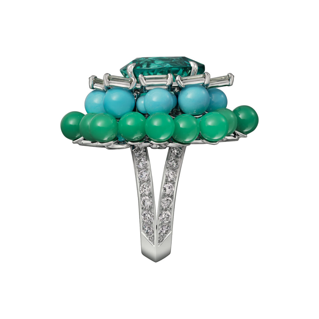 Cette quête incessante de l’équilibre s’incarne visuellement dans des pièces maîtresses analysées au fil des pages, telles que la bague Panthère Orbitale ou le collier Tsagaan. Ici, la haute joaillerie quitte le statut d’ornement pour devenir structure. Le propos n’est pas de saturer l’œil de carats, mais de laisser respirer la matière, de faire en sorte que le métal et la pierre dialoguent dans une économie de moyens qui confine à l’épure. C’est une célébration de la ligne claire, où chaque élément technique doit se justifier par une nécessité esthétique.