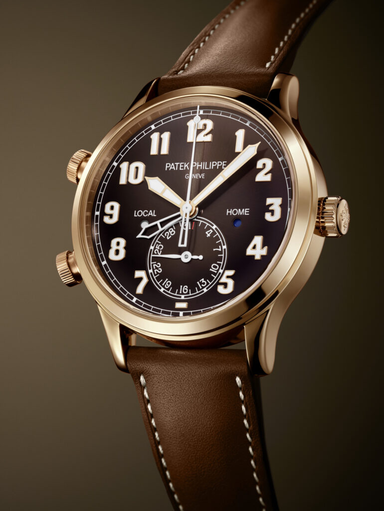 Dix ans après le lancement de la collection, la Calatrava Pilot Travel Time a cessé de surprendre pour devenir un territoire reconnu au sein du catalogue. L’Alarm Travel Time référence 5520P de 2019, avec son calibre AL 30-660 S C FUS de 574 composants et sa sonnerie sur timbre, et la Calatrava Pilot Travel Time Chronograph référence 5924G de 2023, dotée d’un chronographe flyback, ont élargi la famille vers la complication pure. La 5524G-010 fait le choix inverse : revenir à l’essence Travel Time, sans ajout fonctionnel, en misant sur le raffinement du dialogue entre matériaux et lumière.