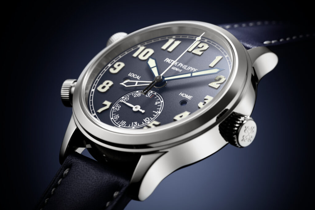 Lorsque la Manufacture dévoila la Calatrava Pilot Travel Time référence 5524G en 2015, la réaction fut ambivalente. Le cadran bleu profond, inspiré de la peinture des chasseurs américains de l’époque, les chiffres arabes luminescents, les aiguilles glaive — tout cela semblait appartenir à un autre vocabulaire que celui des Calatrava traditionnelles. Certains y virent une rupture malvenue ; d’autres, l’affirmation d’un chapitre méconnu de l’histoire maison.