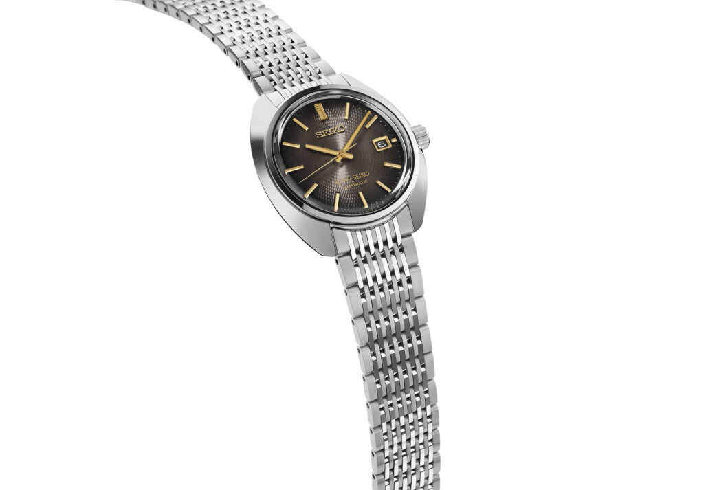 Ce choix chromatique n’a rien d’une concession à l’ostentation. Il fait écho aux décorations complexes que Kintaro Hattori commandait sur ses premiers garde-temps pour en souligner la valeur technique. Sur la nouvelle King Seiko SJE121, cette inspiration se traduit par un cadran au motif géométrique, rappelant les guillochages d’époque, traité dans un dégradé de gris qui s’assombrit vers les bords pour mieux faire jaillir les index dorés. Animée par le calibre extra-plat 6L35, cette pièce limitée à 800 exemplaires incarne une élégance urbaine et architecturale.