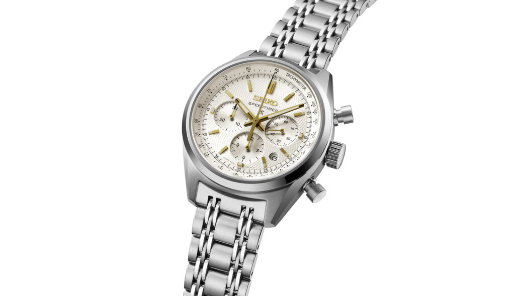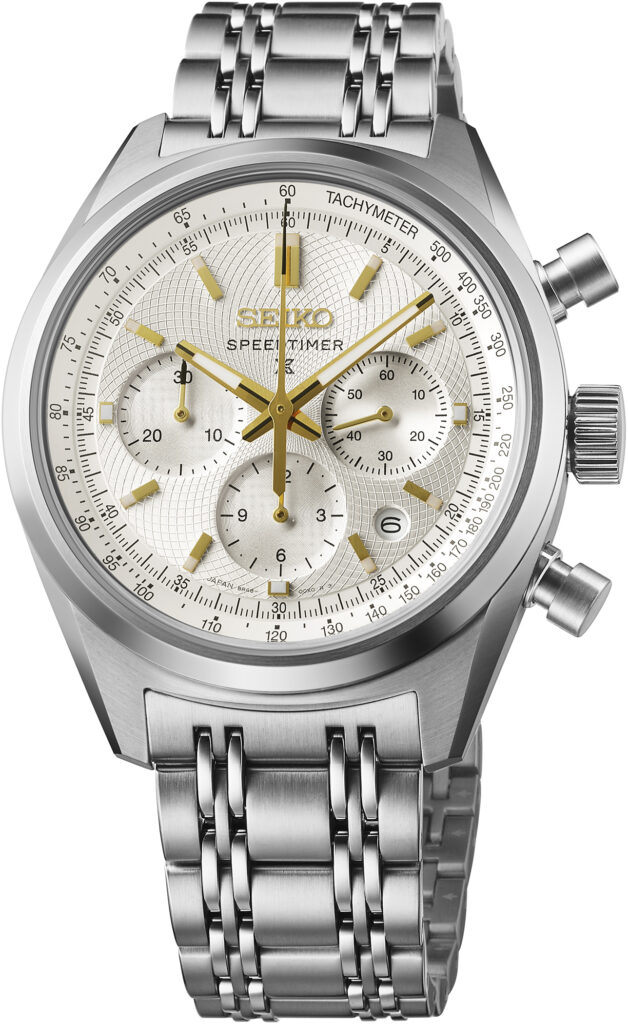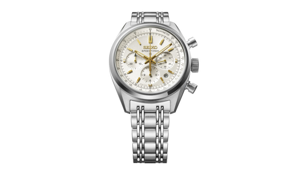 Le registre change avec la Prospex Speedtimer SRQ059, qui revisite l’héritage sportif de la maison — notamment le premier chronographe automatique de 1969. Ici, la rigueur fonctionnelle du cadran blanc est réchauffée par des accents dorés, créant un contraste lisible et sophistiqué. Au-delà de l’esthétique, c’est la mécanique qui prime : le calibre 8R48, doté d’une roue à colonnes et d’un embrayage vertical, rappelle que chez Seiko, la beauté est toujours une conséquence de la performance.