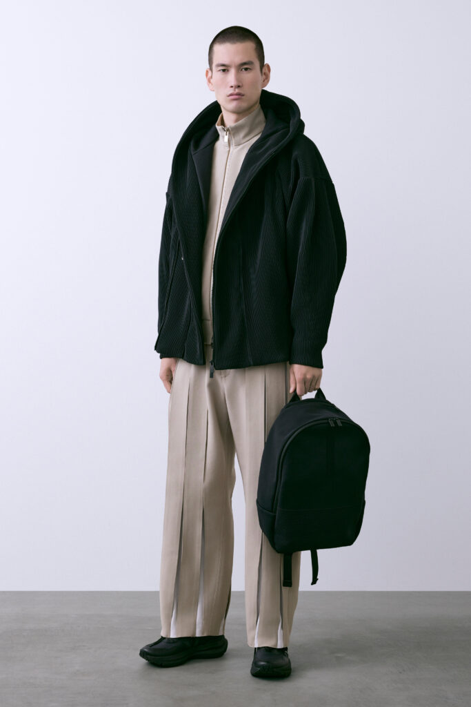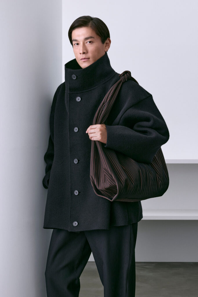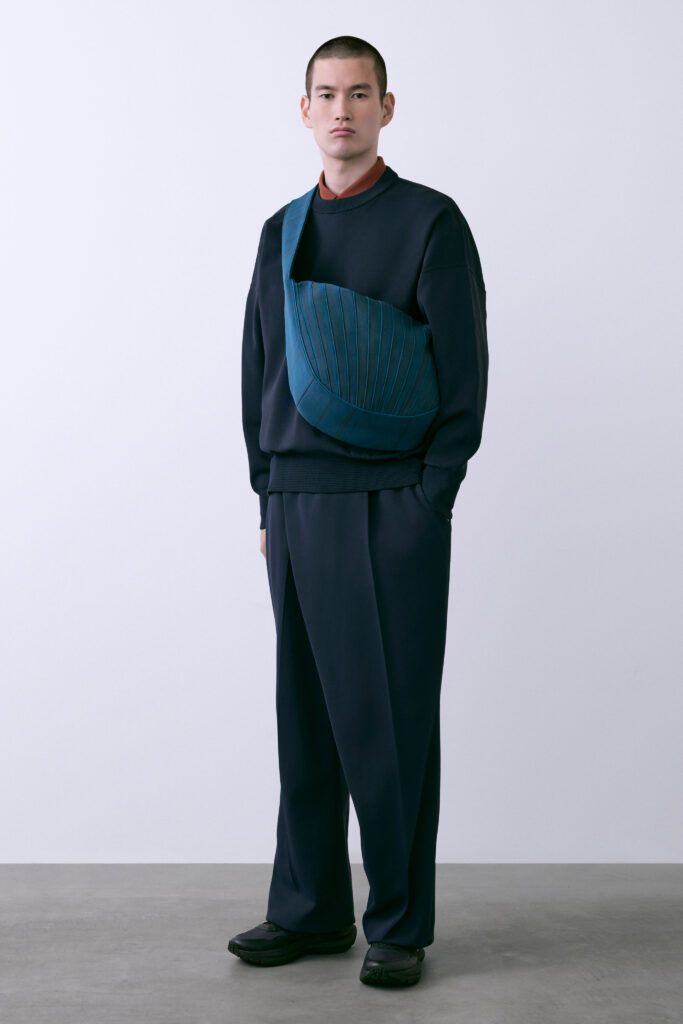 VOL.12 hommes s’inscrit dans l’expansion récente de la maison sur le segment masculin — segment qu’elle développe à Paris, où Takahashi, alors directeur de Issey Miyake Men, a fondé son regard de designer avant de retourner à Tokyo créer sa propre structure.
