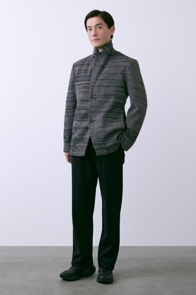 Ce que propose CFCL à travers douze volumes successifs ressemble moins à une œuvre saisonnière qu’à un protocole de recherche : mêmes contraintes, même outil, paramètres légèrement modifiés. VOL.12 pose la palette sourde là où VOL.1 utilisait le jaune solaire. La maille absorbe ce changement sans perdre sa nature. Ce n’est pas une évolution de style — c’est une démonstration de cohérence matérielle. La prochaine question est de savoir jusqu’où ce protocole peut aller dans le vêtement de cérémonie masculin — territoire que Takahashi a explicitement désigné comme le prochain champ d’exploration de la maille computationnelle.