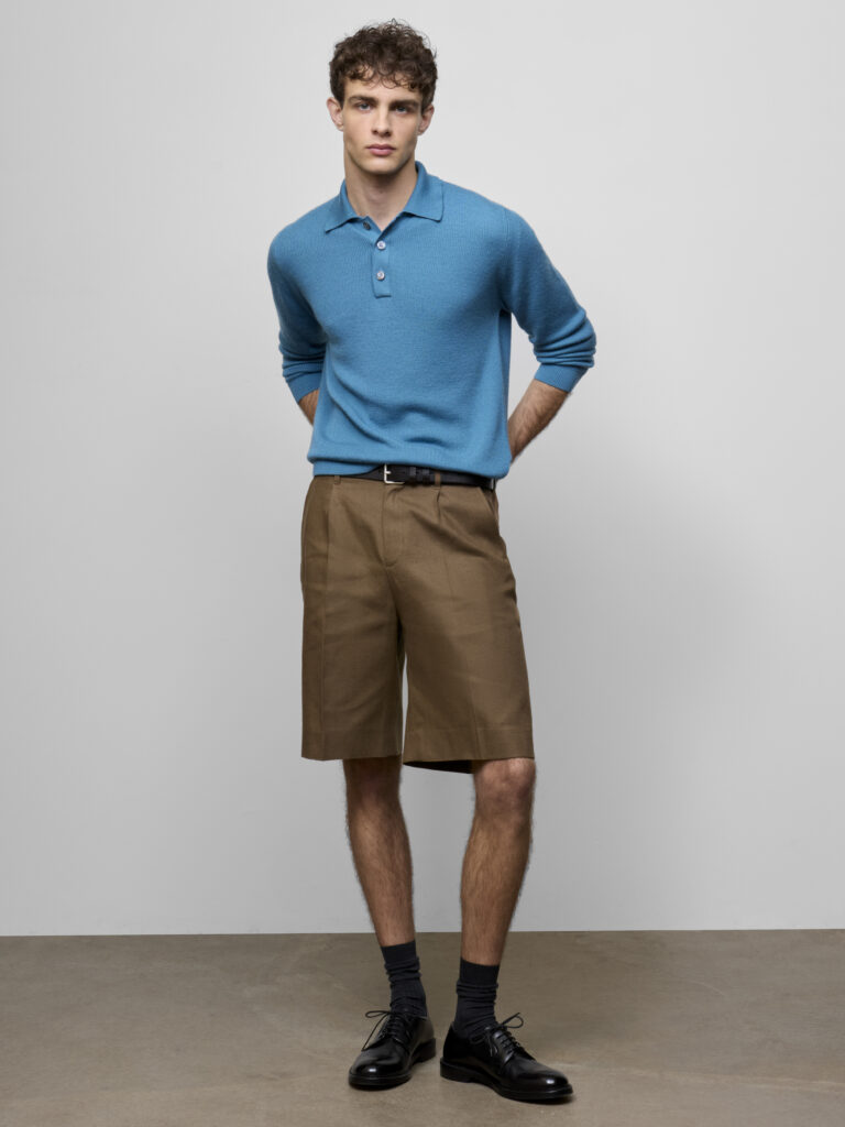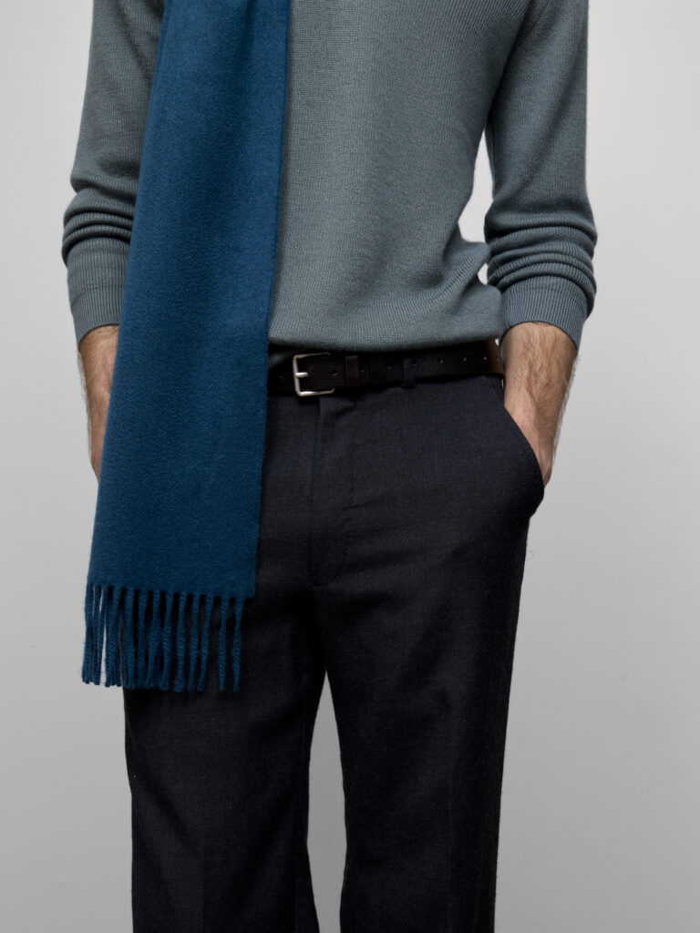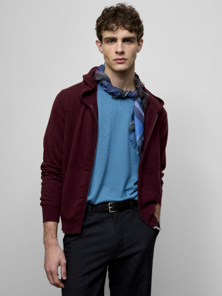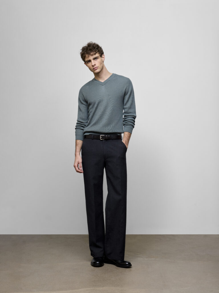 Le nouveau mélange cachemire/laine d’agneau — utilisé dans le pull et la veste Boyd — témoigne de la même logique de contrainte assumée. La laine d’agneau, plus rigide que le cachemire pur, apporte la structure que ce dernier ne peut fournir seul dans des constructions de maille bouclée. Ce n’est pas un compromis économique vers le bas ; c’est une réponse technique à un problème de tenue de forme.