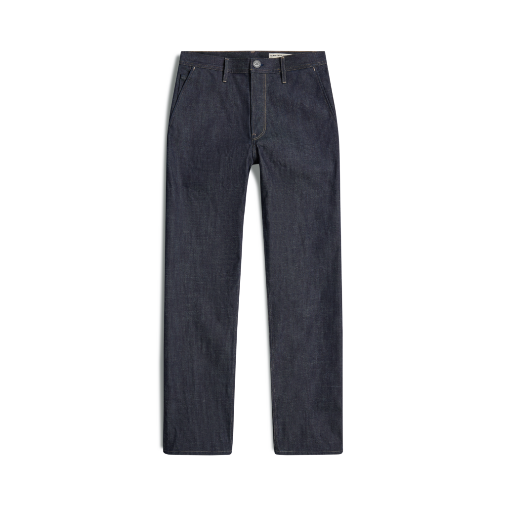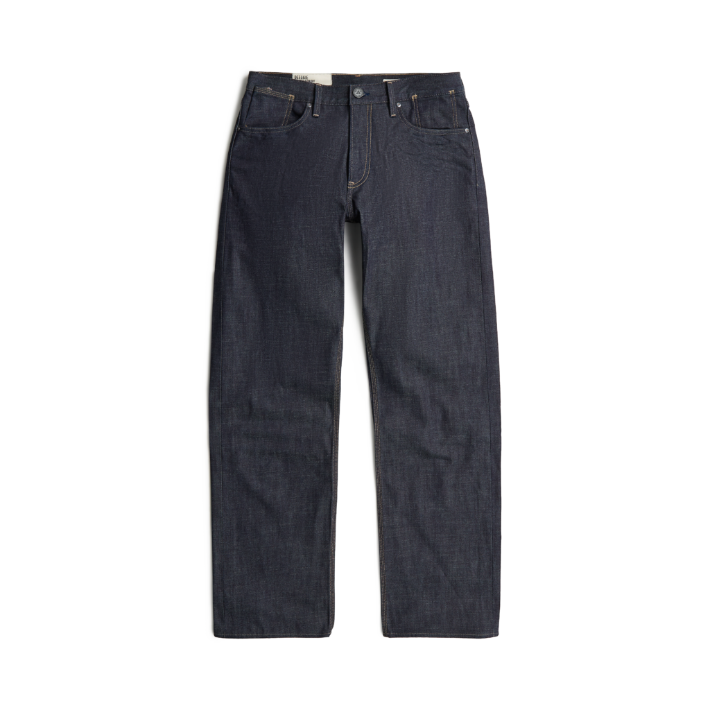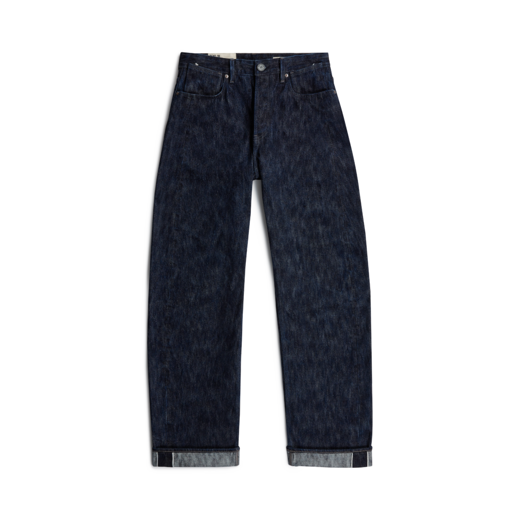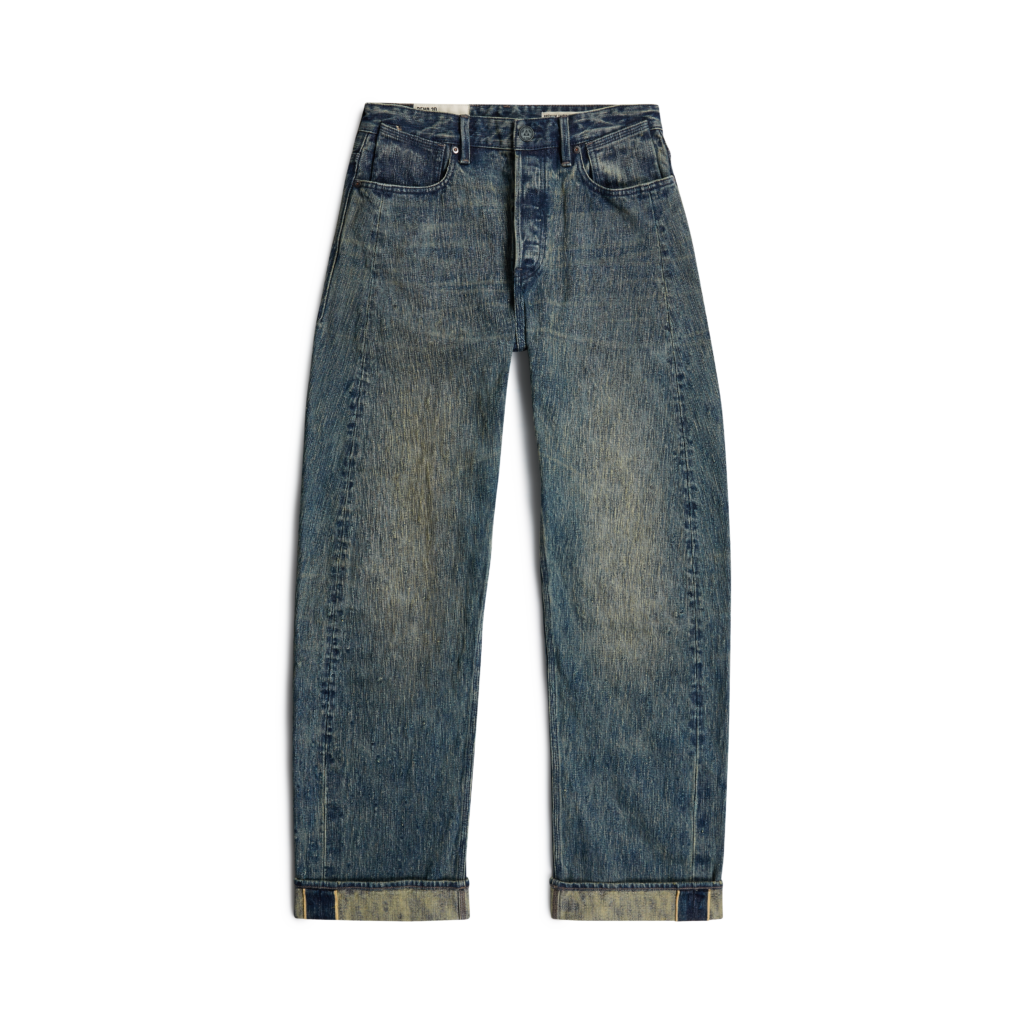 Le terme « selvedge » — contraction de « self-edge », lisière auto-finie — désigne un mode de tissage sur métiers à navette étroits, où la trame est renvoyée d’un bord à l’autre sans coupe ni surjet. Cette continuité textile confère au denim une densité latérale qui limite l’effilochage et améliore la tenue dans le temps. Pour le jean Deeggie, pièce centrale de la collection, G-STAR a sélectionné un denim brut de quatorze onces et quart, tissé en Italie sur des métiers datant des années soixante. La finition selvedge apparaît sur la couture extérieure et les replis de poches — non comme ornement, mais comme signature du procédé.