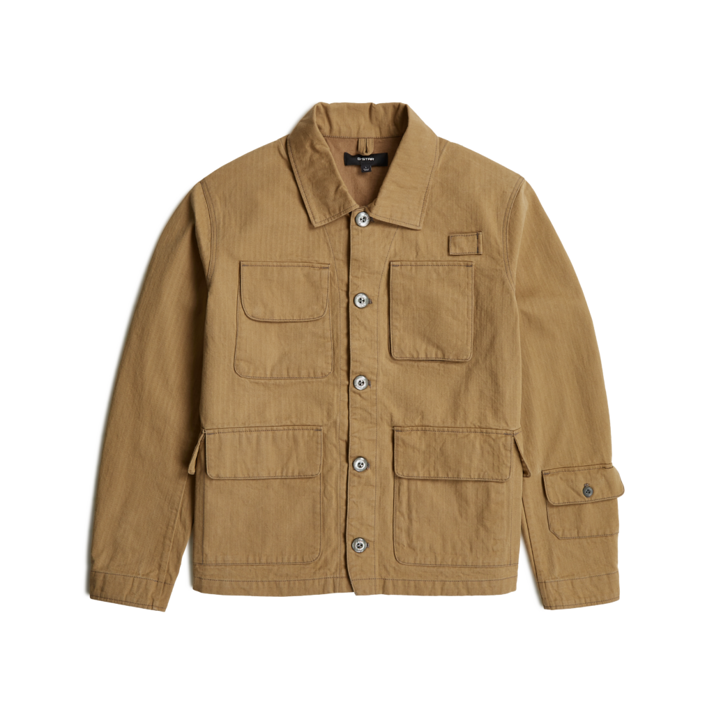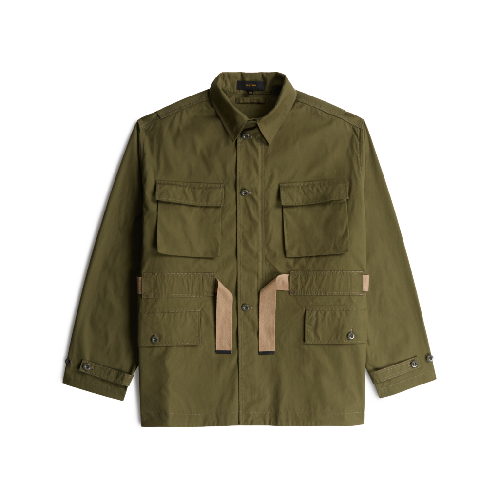 La Field Jacket proposée dans Archetypes reprend la silhouette portée par la 10ᵉ division de montagne de l’armée américaine en Italie. L’original, conçu pour résister à l’altitude et aux mouvements répétés, combinait coupe droite, poches cargo accessibles sans déboutonner, et doublure amovible. G-STAR conserve la géométrie — épaules tombantes, longueur mi-cuisse, col montant — mais remplace le coton sergé par un denim selvedge japonais dont la densité permet de se passer de doublure permanente.