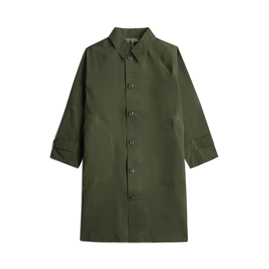 C’est sur ce point que la collection Archetypes mérite attention. Elle ne cherche pas à « réinventer » le workwear — terme marketing souvent vide de sens. Elle en extrait les règles de construction et les transpose dans des matières et des proportions qui ont du sens aujourd’hui. Le Dismounted Raincoat, inspiré des imperméables militaires américains des années quarante, en est un bon exemple : la silhouette est conservée, mais le tissu technique remplace le coton ciré, et les fermetures éclair métalliques des années quarante laissent place à des systèmes de fermeture plus discrets, moins bruyants, plus adaptés à un usage civil.
