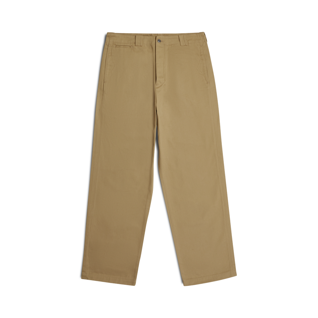 Le pantalon M-1951, référence des M-51 Cargos de la collection, a été développé pour les climats de froid extrême — initialement porté par-dessus une doublure matelassée. Sa coupe ample, ses six poches cargo et ses renforts aux genoux répondaient à une logique d’usage : mobilité, stockage, résistance. En supprimant la doublure et en ajustant les proportions, G-STAR isole la fonction cargo — la capacité de charge répartie — et la transpose dans un contexte urbain où l’on ne porte plus de couches thermiques superposées, mais où l’on attend toujours du vêtement qu’il réponde à un usage quotidien.