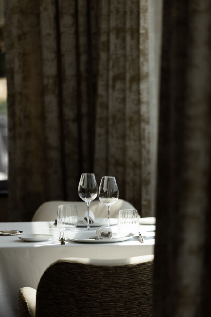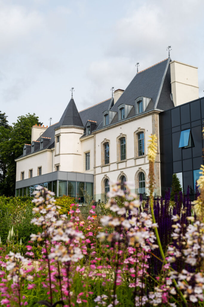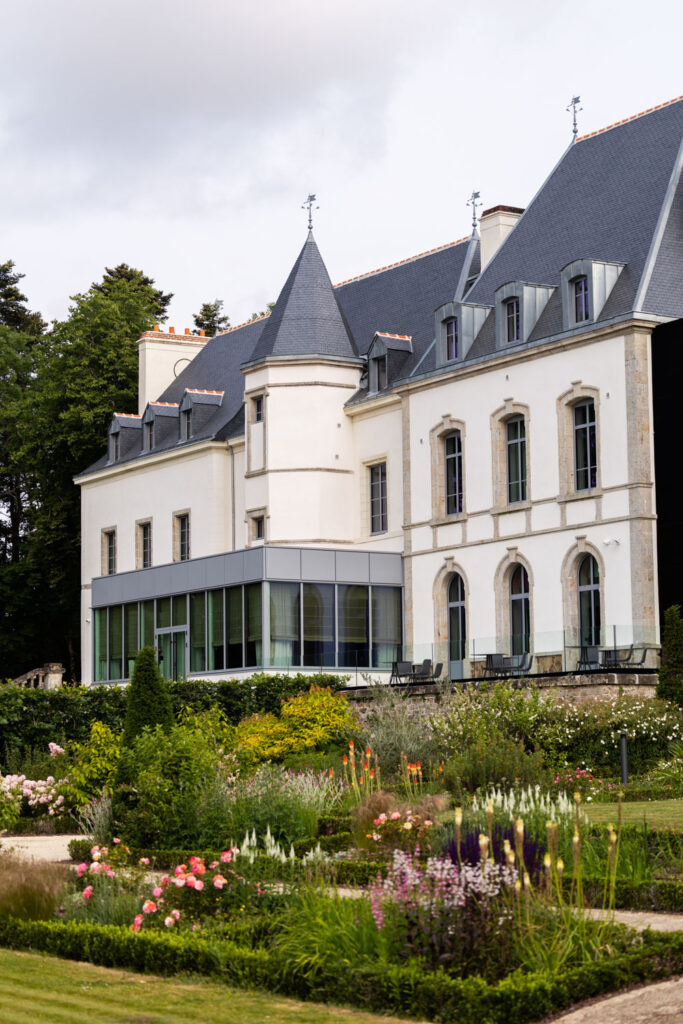 Au Liziec, la structure est différente. Samson chapeaute trois espaces — le bar, la Brasserie des Jardins avec sa terrasse de quatre-vingt-quatre couverts, et la Table du Liziec — au sein d’un château du XVIe siècle rénové en hôtel de collection par les frères Philippe et Laurent Davalo. Le restaurant gastronomique est positionné en surplomb : trente-cinq couverts, service cinq soirs par semaine et le dimanche midi, salon privatif de douze couverts sur réservation. Les menus portent les noms de plantes sauvages côtières du Golfe du Morbihan — Giroflée des dunes en quatre actes, Lagure ovale en sept. La carte s’alimente des jardins et vergers du Domaine, et des approvisionnements bretons que Samson mobilise depuis des décennies : homard, coquillages, herbes de bord de mer.