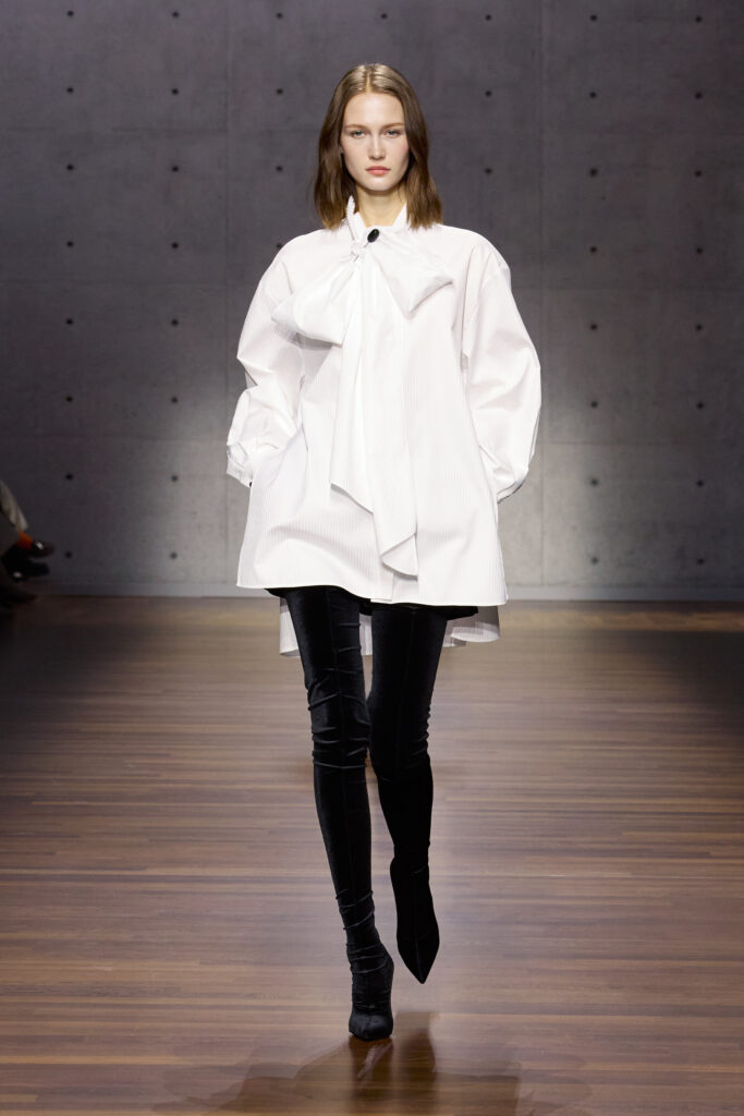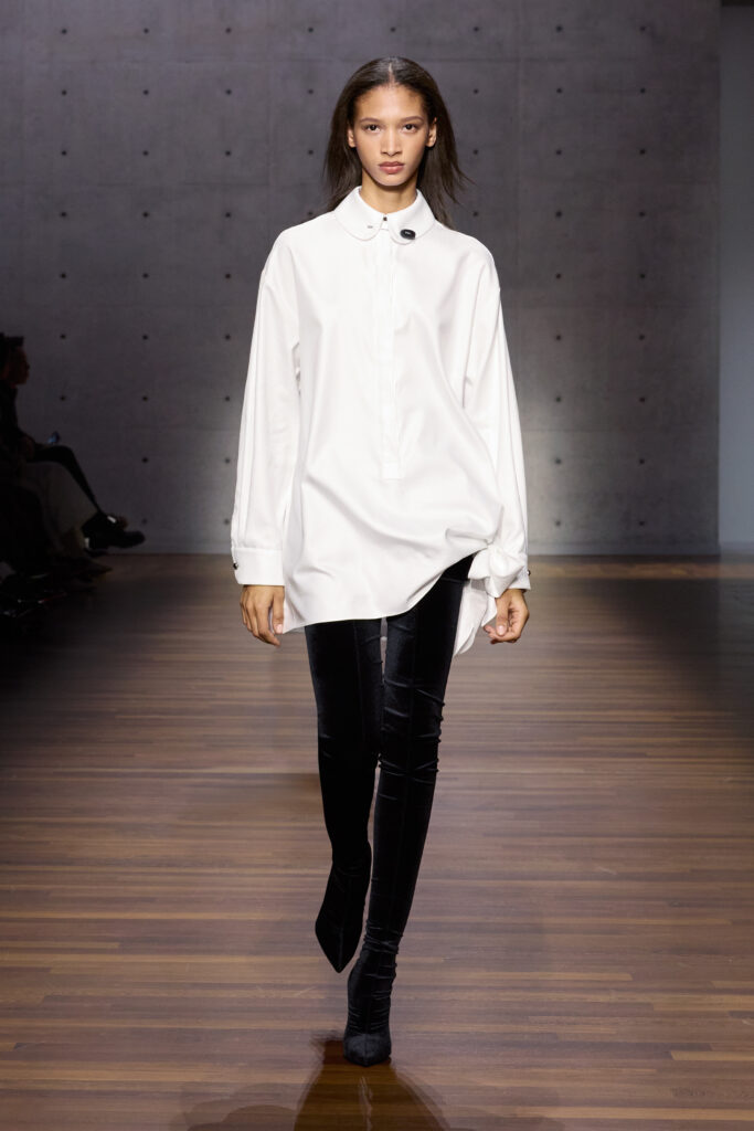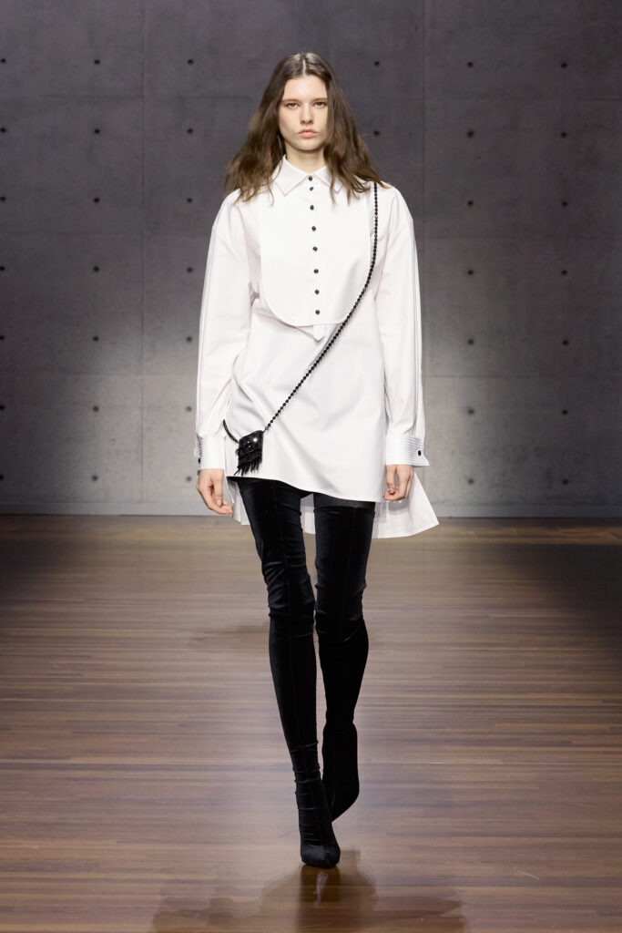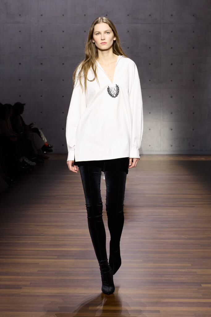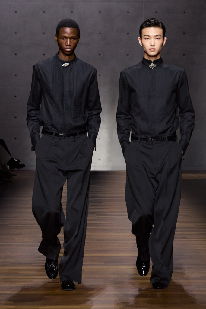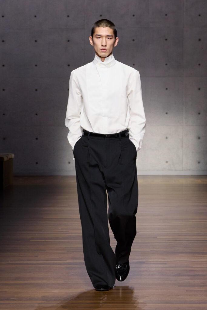 La collection s’ouvre sur des trench-coats et se ferme sur des chemises blanches et des tenues black tie. Ce mouvement — du fonctionnel vers le cérémoniel — est lui aussi une déclaration. Silvana Armani et Leo Dell’Orco n’ont pas cherché la rupture pour leur premier essai conjoint. Ils ont choisi la discipline. Ce n’est pas le parti pris le plus facile. C’est probablement le plus juste.
