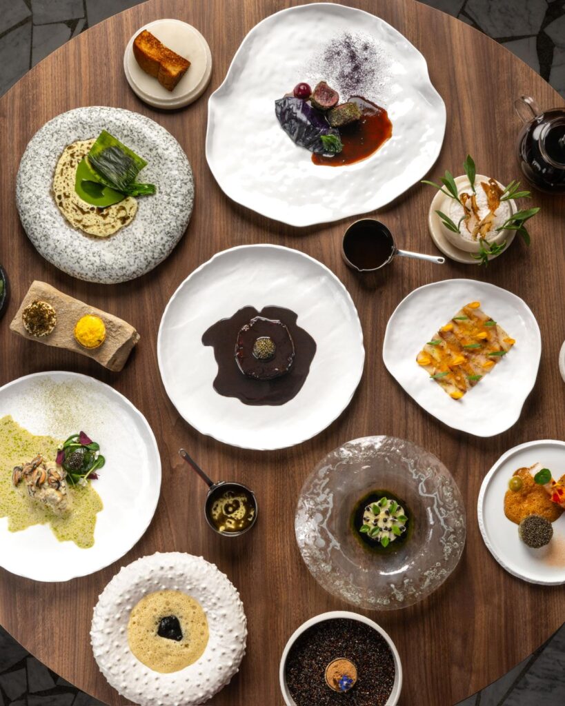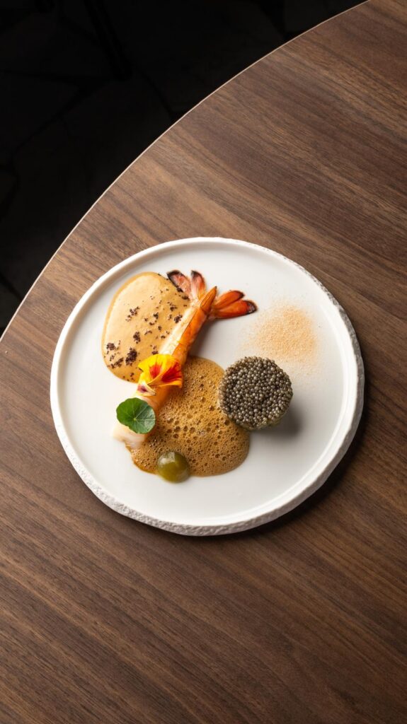 La seiche confite dans son encre, servie en nuage d’ail, est devenue le plat signature de L’Oursin. Ce type de plat — un produit unique, une transformation radicale, une lisibilité immédiate pour l’inspecteur comme pour le convive — dit quelque chose du calcul culinaire à l’œuvre. La langoustine dans l’esprit d’un aïoli, relevée de caviar ; le Saint-Pierre avec un jus infusé à la feuille de figuier : des références culturelles provençales déplacées dans une grammaire gastronomique contemporaine. Pas une cuisine-musée. Pas une cuisine de tendance non plus.