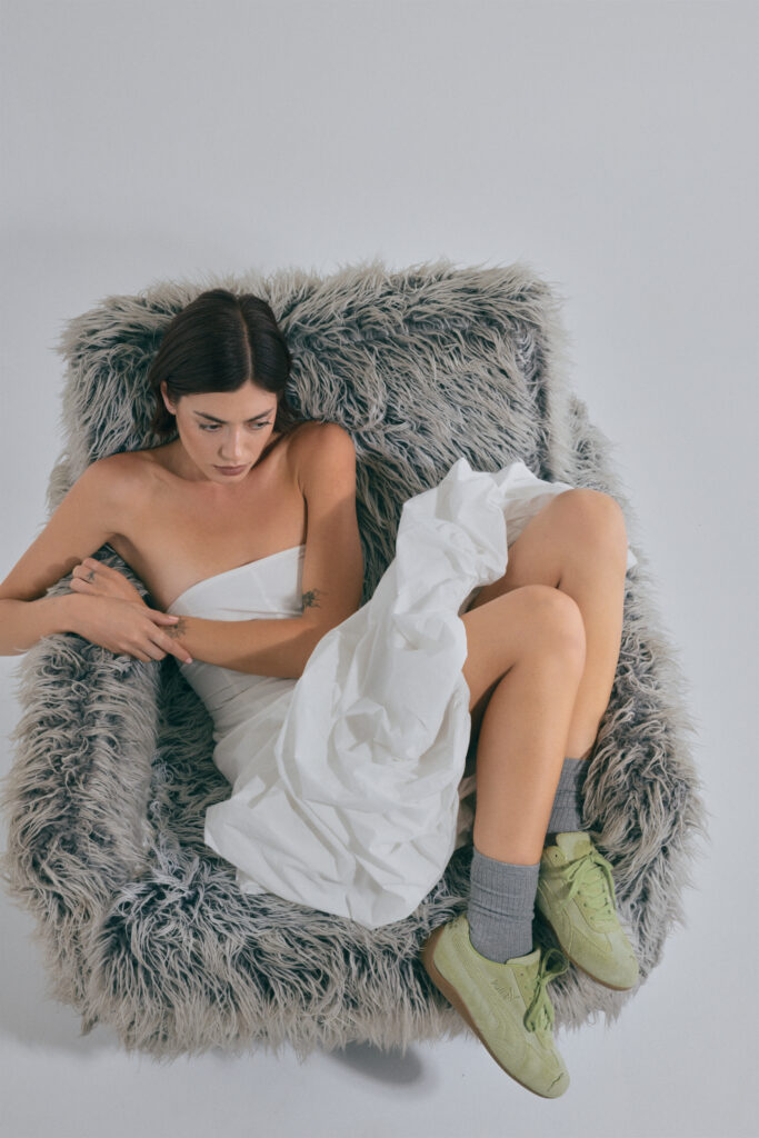 Les visuels campagne mettent en scène les chaussures « at ease » — formule anglaise élégante pour dire : posées, dans une lumière douce, sans emphase. Tons naturels, textures lisibles, absence de mise en scène urbaine hyperactive. C’est cohérent avec l’approche de Cathari, qui depuis ses débuts privilégie le contraste subtil et la féminité construite sur la matière, pas sur la forme. Ici, elle transpose cette méthode à deux icônes masculines du catalogue Puma.