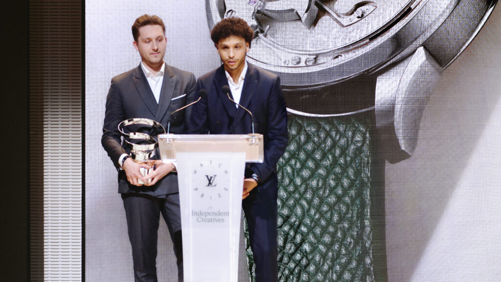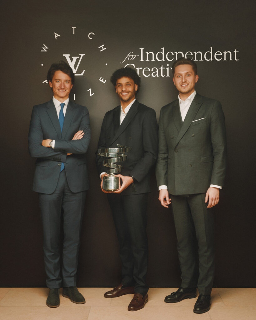 Le 24 mars 2026, à la Fondation Louis Vuitton, Raúl Pagès — lauréat de la première édition du Prix, en 2024 — leur remet le trophée en personne. Un objet en argent dont la spirale s’inspire du balancier, livré dans une malle en toile Monogram fabriquée à la main dans les ateliers d’Asnières. La dotation est de 150 000 euros, assortie d’un an de mentorat assuré par les horlogers de La Fabrique du Temps à Meyrin.