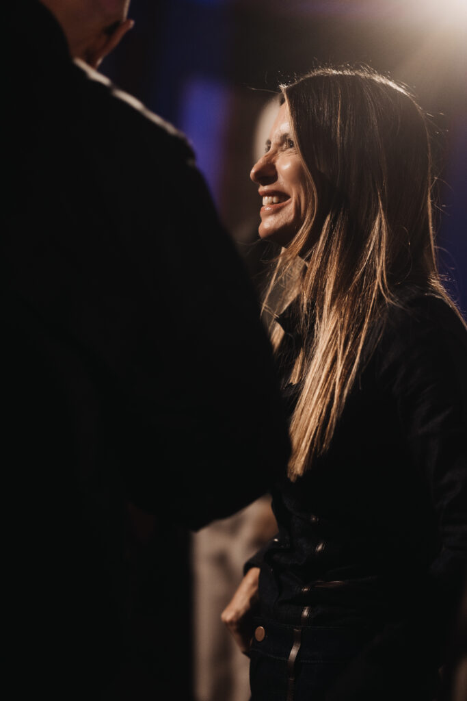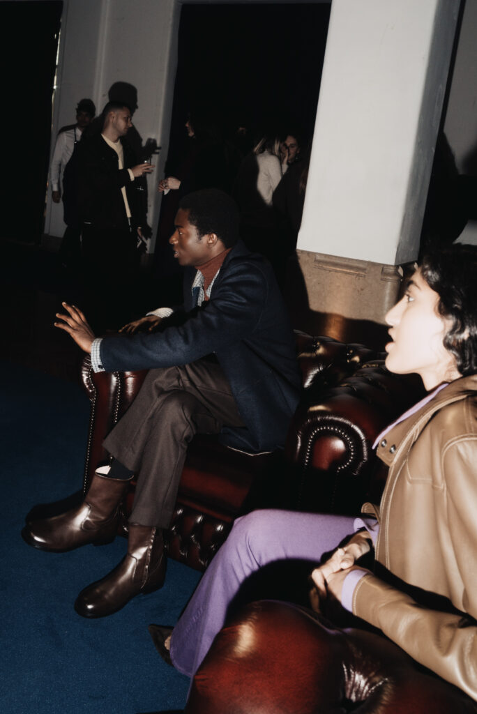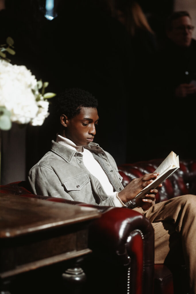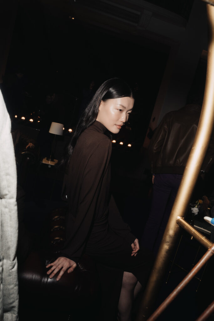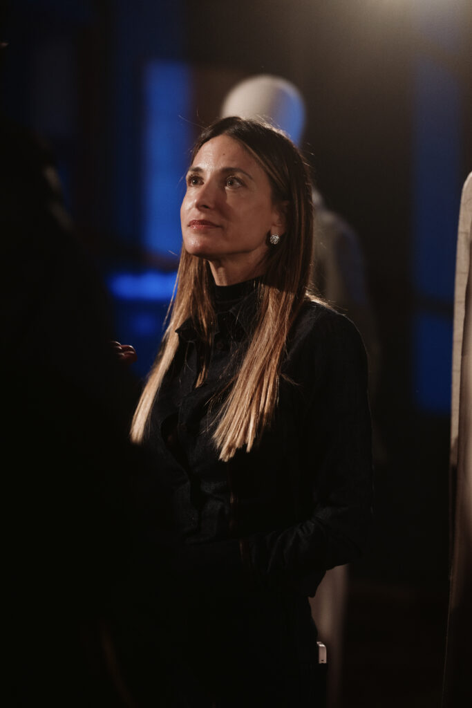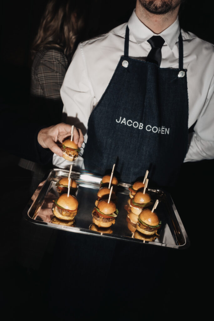 La scénographie de Fabio Chrestich insiste sur un point que la Maison martèle depuis Nicola Bardelle : la cohérence des signes identitaires prime sur la nouveauté formelle. La surpiqûre en trapèze — spécifique au dos de la ceinture des jeans cinq-poches — est reproduite sur les vestes et bombers comme motif structural. Les rivets en demi-sphère évoquent le tréma du Ë, qui différencie graphiquement Jacob Cohën de l’anthroponyme ordinaire et signale une appartenance. Jennifer Tommasi Bardelle déclare dans le communiqué : « Saison après saison, travailler des matières rares et exclusives devient de plus en plus la signature stylistique de Jacob Cohën. Dans son évolution naturelle, la maison reste profondément fidèle à ses racines. » C’est une déclaration de continuité dans un marché qui récompense souvent la rupture. La cohérence est ici un pari stratégique.